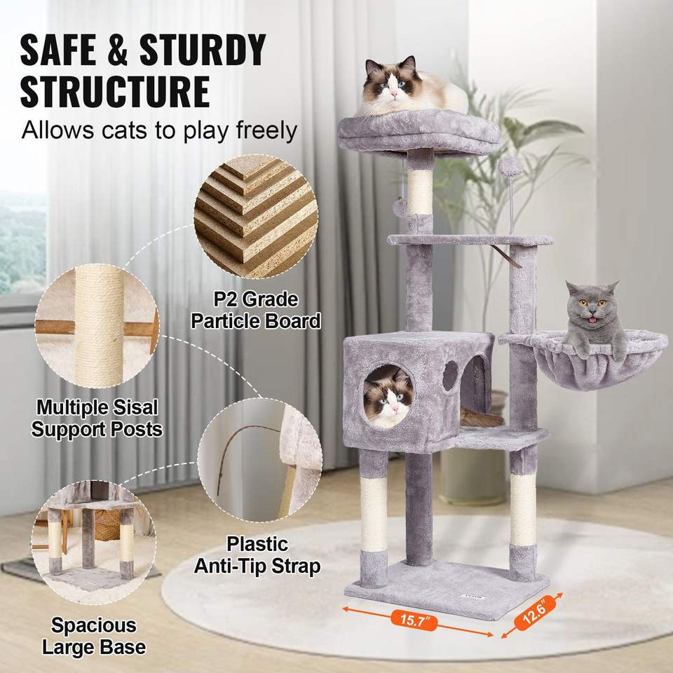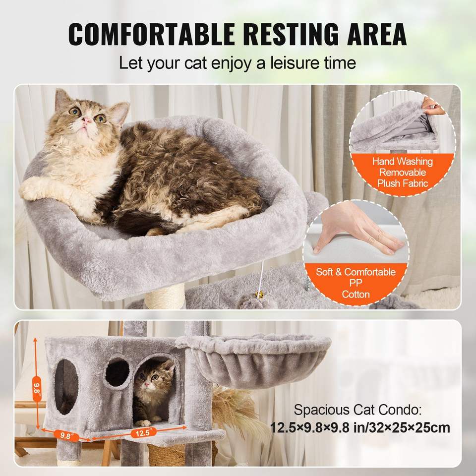 Torre per Gatti da Interno da 115 cm con Tiragraffi in Sisal, Amaca, Piattaforme di Salto e Ampia Cuccia per Gatti