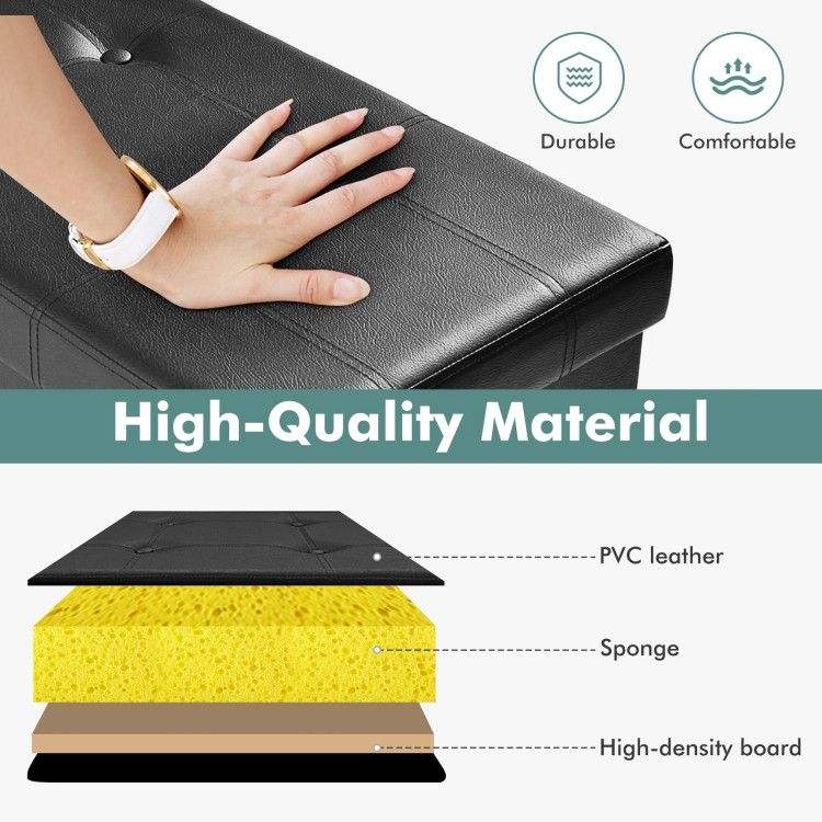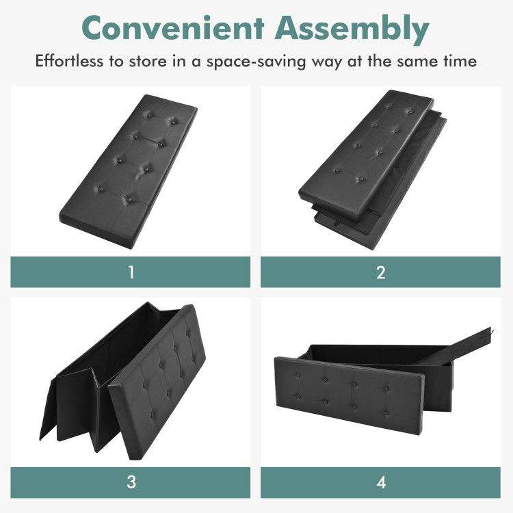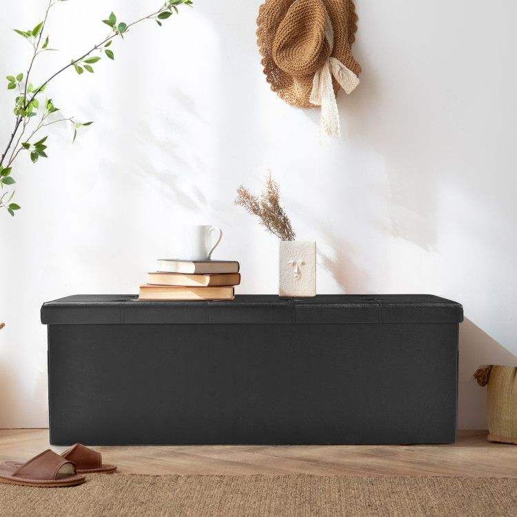 Panca Pieghevole con Contenitore da 45 Pollici, Pouf con Schiuma Memory, Sgabelli e Pouf Confortevoli
