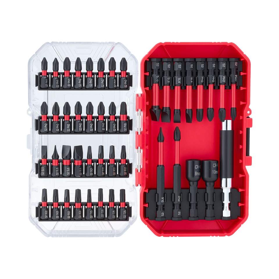 Set di 45 Punte Magnetiche Phillips, a Taglio, Quadrate, Torx, Esagonali, con Asta di Prolunga e Custodia Trasparente