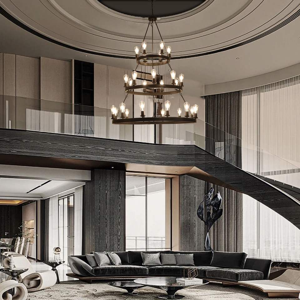 Lampadario a sospensione a 3 livelli in stile industriale retrò da 45 pollici, 27 luci, nero, stile rustico, per sale da pranzo e soggiorni