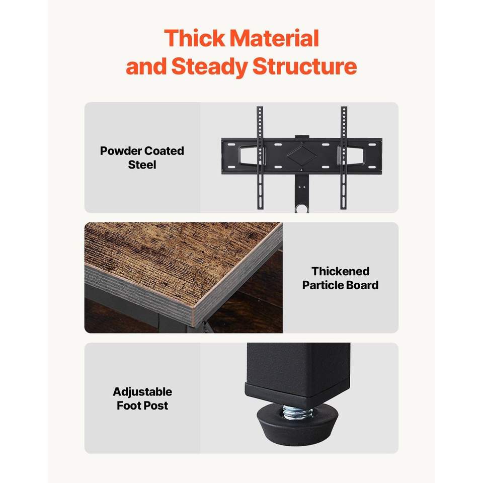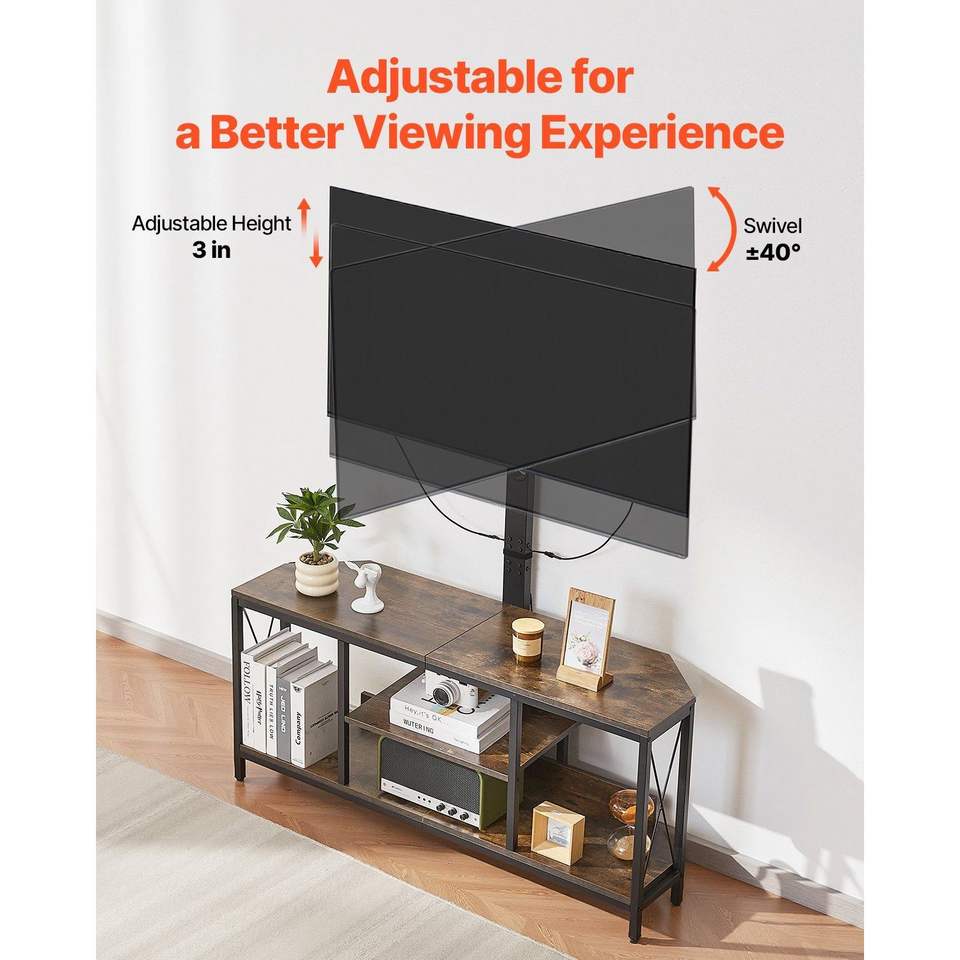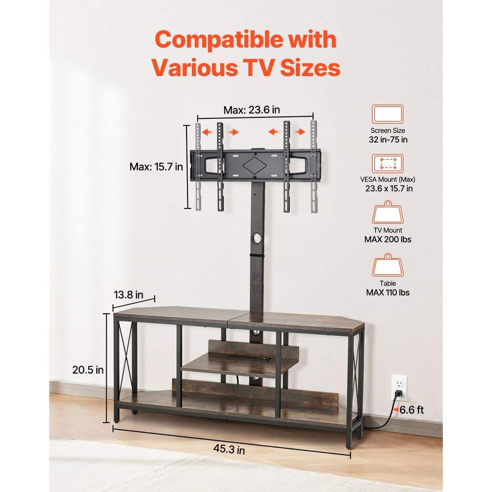 Mobile TV da 45 pollici con supporto per TV fino a 75 pollici, centro intrattenimento con luce LED, presa di corrente e altezza regolabile