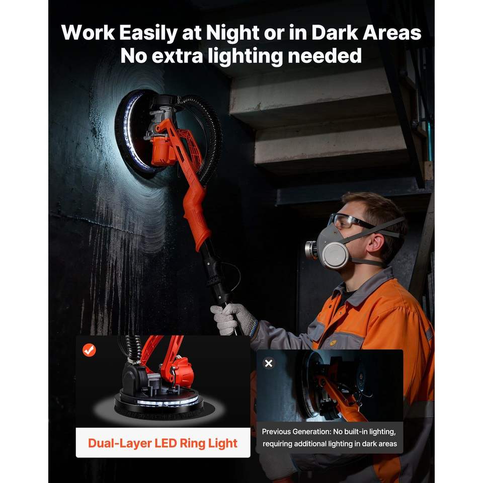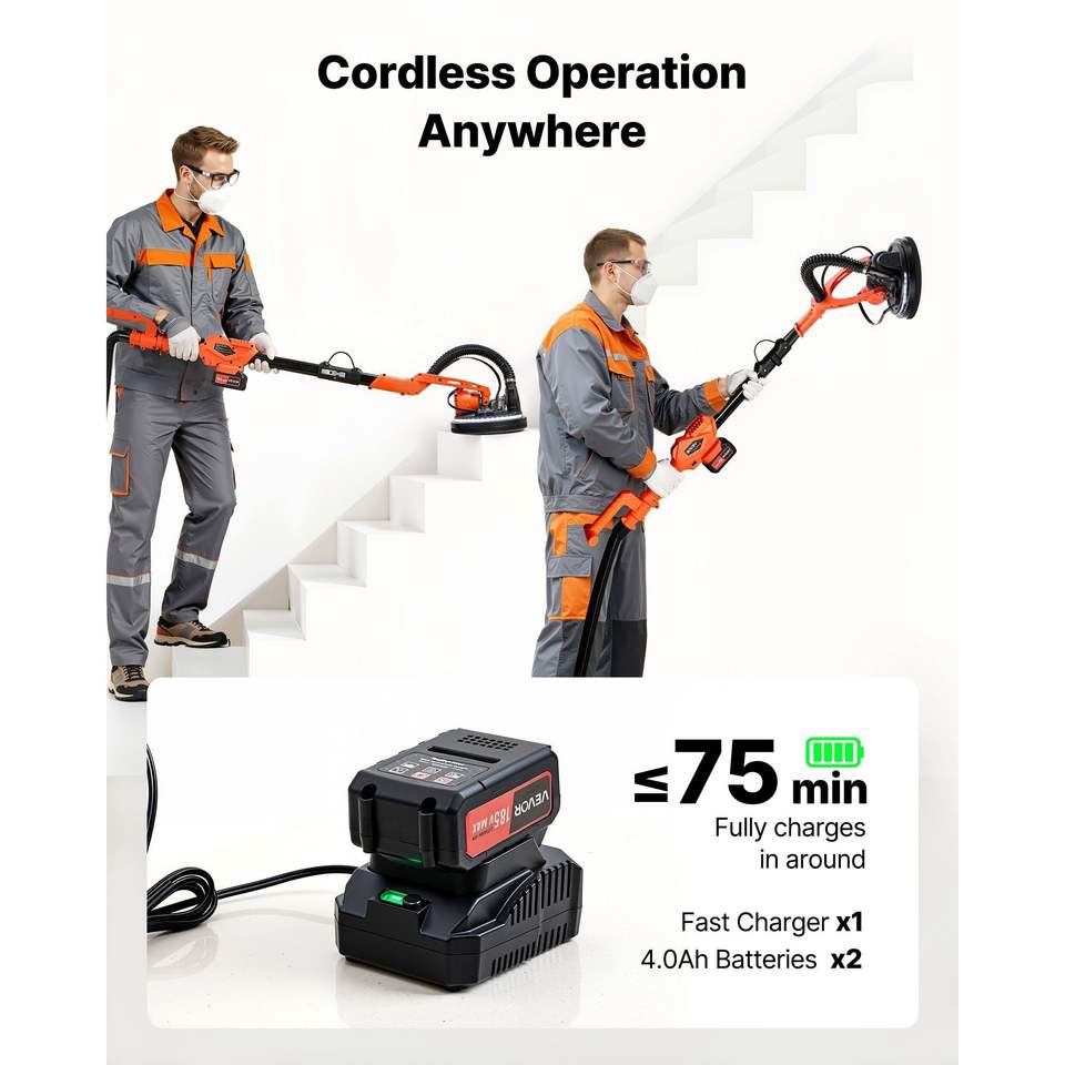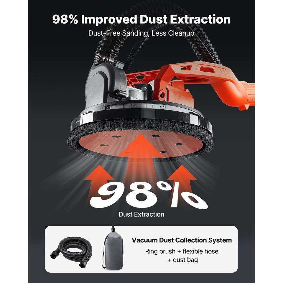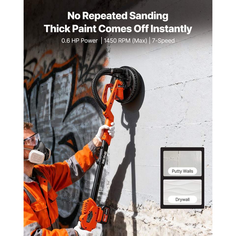 Levigatrice Elettrica a Batteria da 450W per Cartongesso con Aspirazione Polvere, 7 Velocità Variabili (0-160), Strumento per la Rimozione di Controsoffitti in Cartongesso
