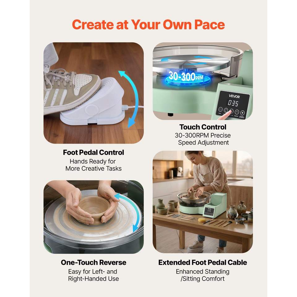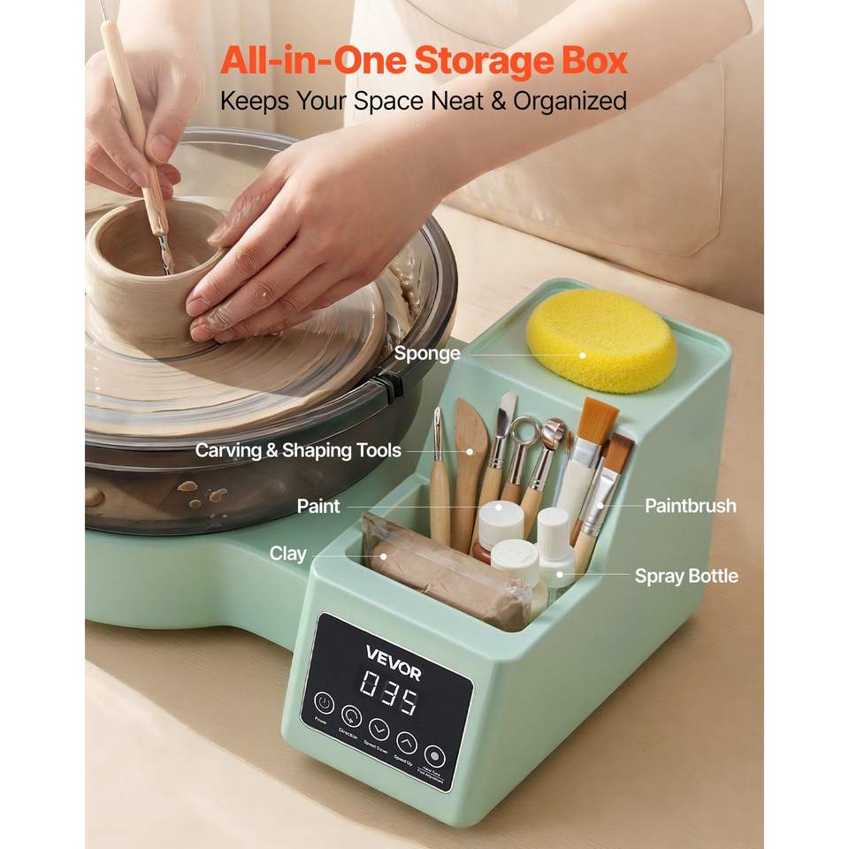 Tornio per Ceramica Elettrico da Tavolo 450W per Adulti, Piattaforma Girevole in Alluminio 11'', Velocità Regolabile 30-300 RPM per Lavorazione dell'Argilla