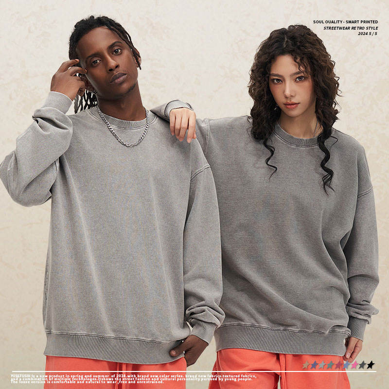 450g felpe con Logo personalizzato in cotone 100% pesante con Logo lavato a girocollo felpe da uomo con marchio Vintage OEM