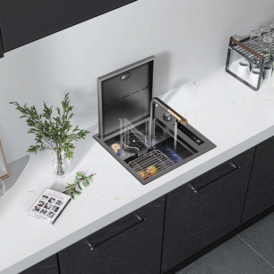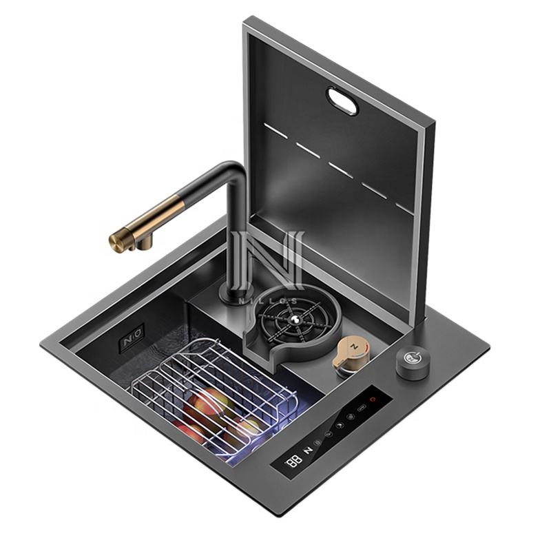 4542 New Technology Single Nano Black Hidden Digital Smart Kitchen Sink 45x42cm Handmade Undermount Dishwasher Compatibility