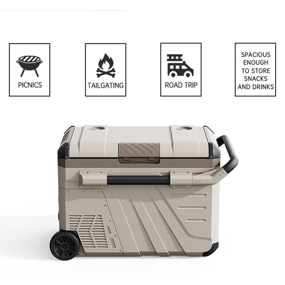 Frigorifero da 45L Portatile da Campeggio, Frigo Vetrina e Congelatore Commerciale da 12v per Auto con Ruote e Maniglia