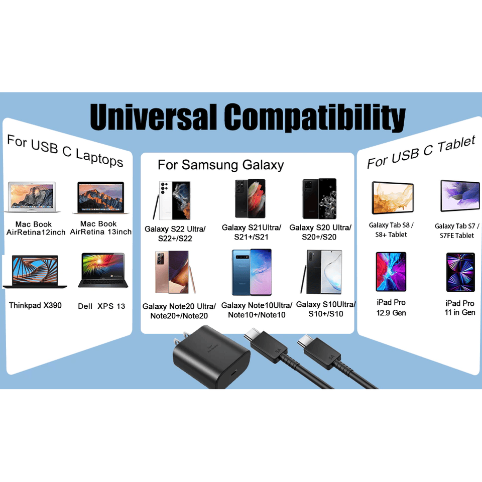 45W USB-C Super Fast Wall Charger with 10FT Cable Compatible with for Samsung for Galaxy S20 S21 S22 S23