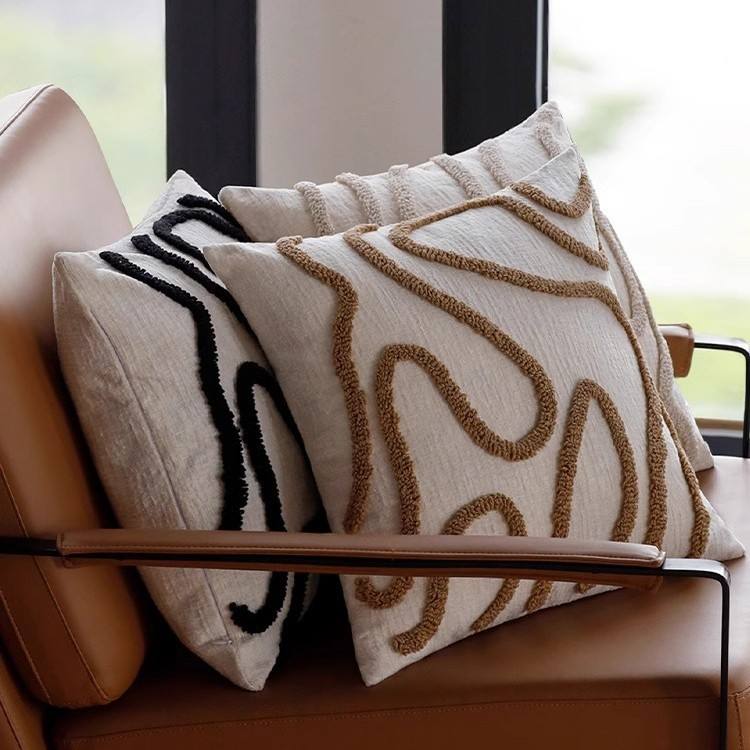 45x45 Boho Style Chenille Decorative Throw Pillow Cover Soft Geometric Lines Cushion Covers 3-color Pillowcase Sofa Living Room