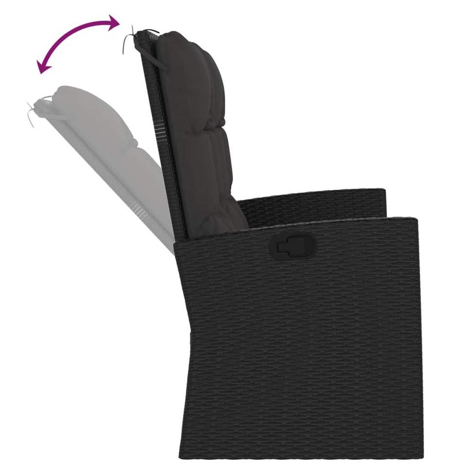 46.5 \ "panca da Patio reclinabile in Rattan nero con cuscini