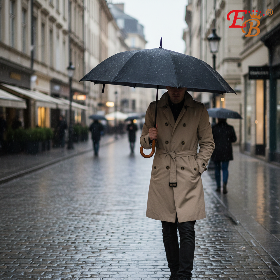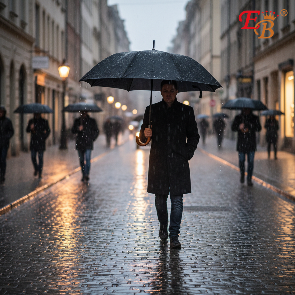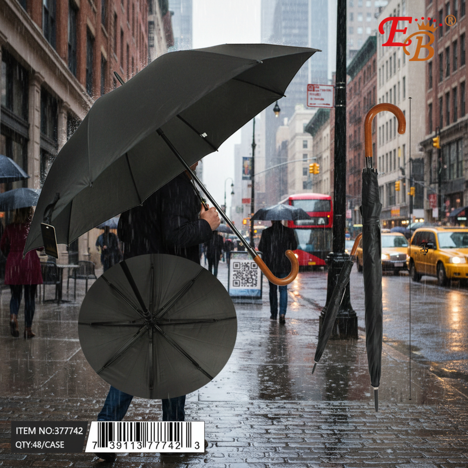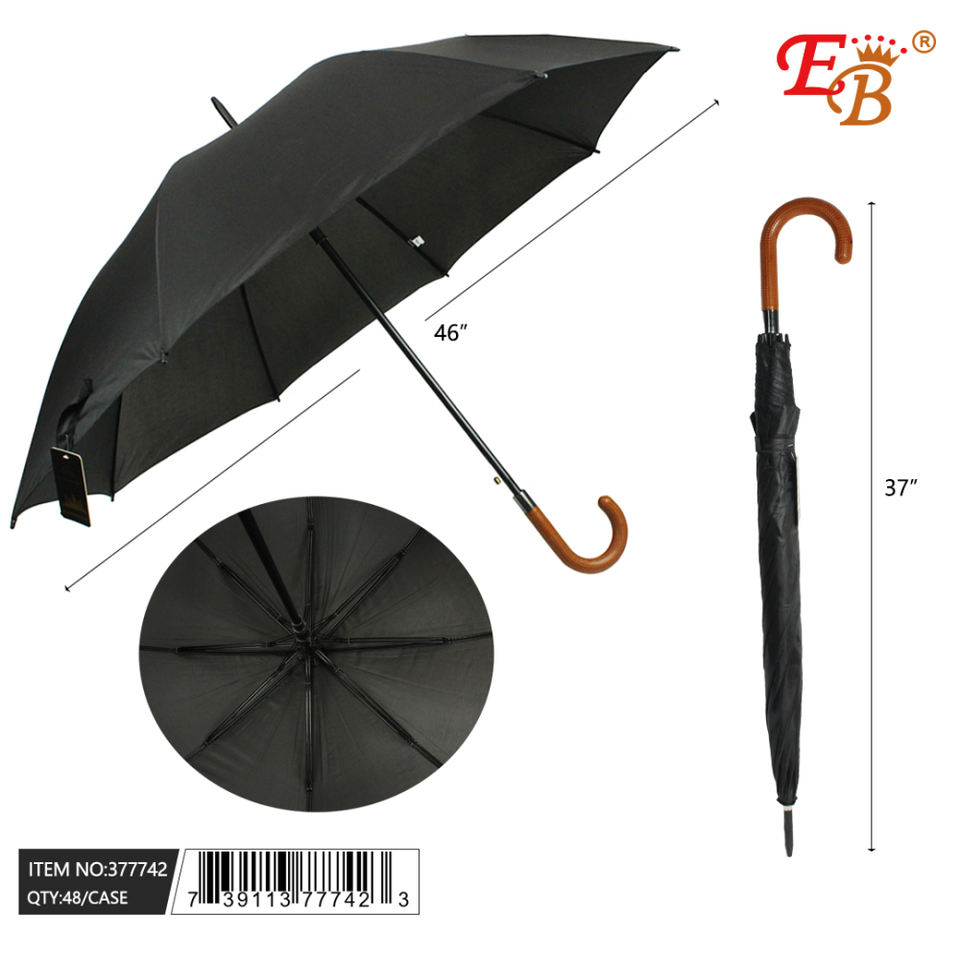 46" Black Umbrella Auto Open 8K Ribs 48PCS/CS Travel Straight and Three-Folding Umbrellas Model 377742