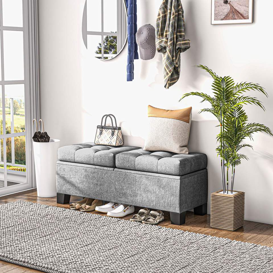 46\" Upholstered Storage Ottoman Bench Button Tufted End of Bed Bench with Steel Frame & Safety Hinges Stools & Ottomans