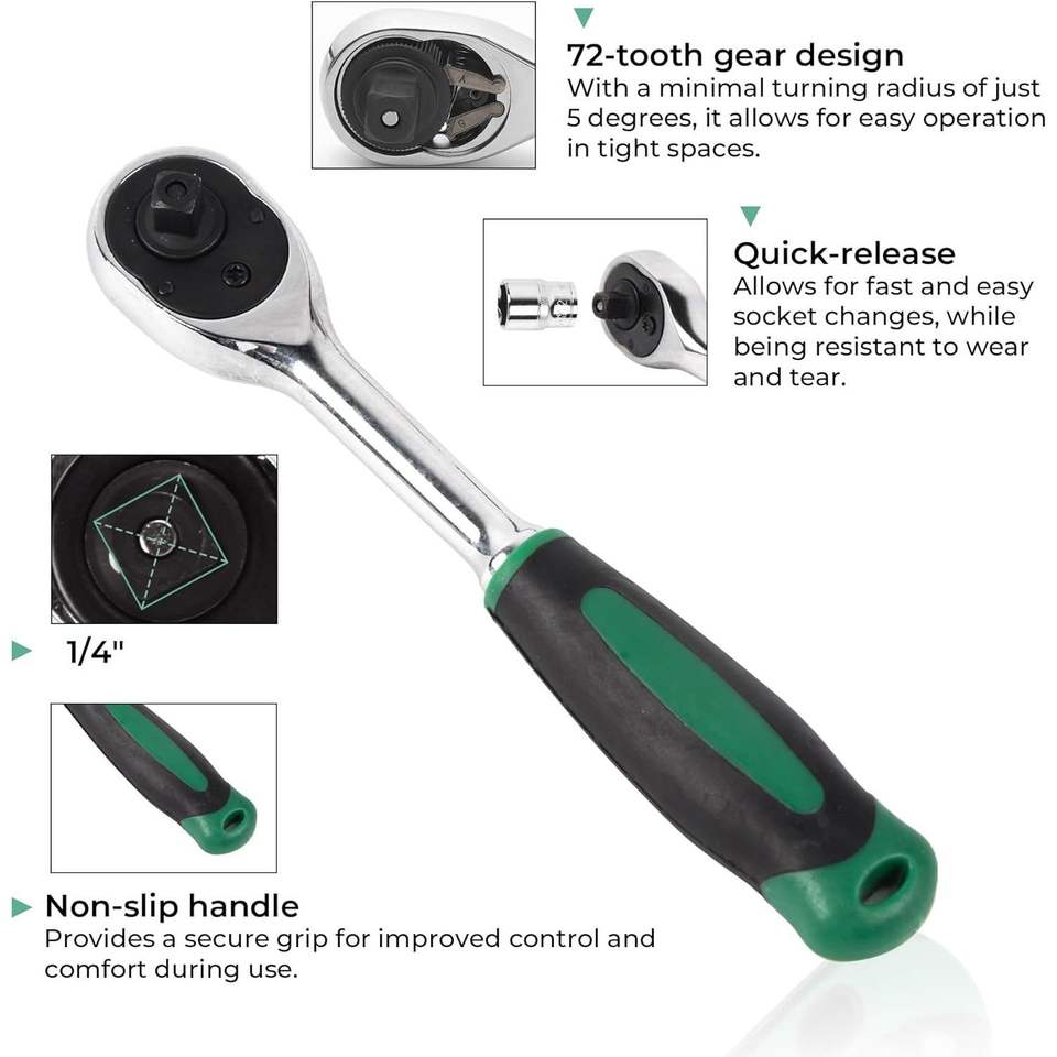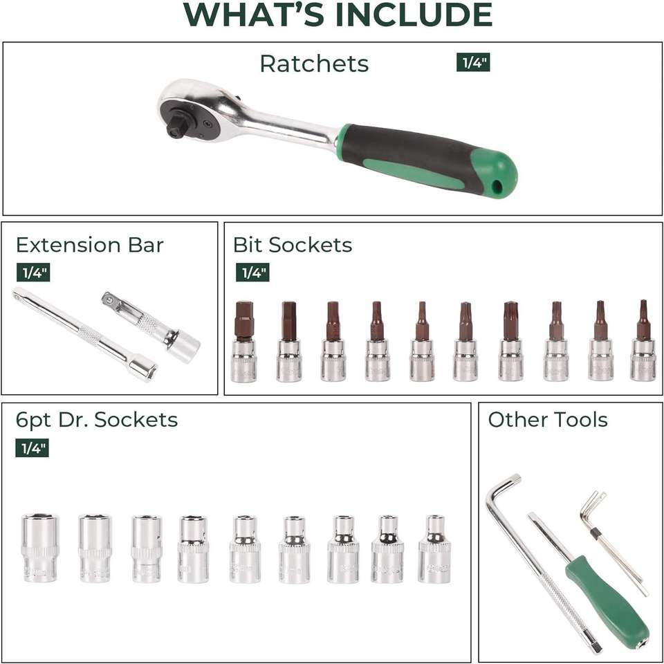 Set di 46 Chiavi a Bussola Metriche da 1/4 di Pollice, Kit di Attrezzi per Meccanici con Custodia in Plastica, Include Misure di Attacco e Bussole