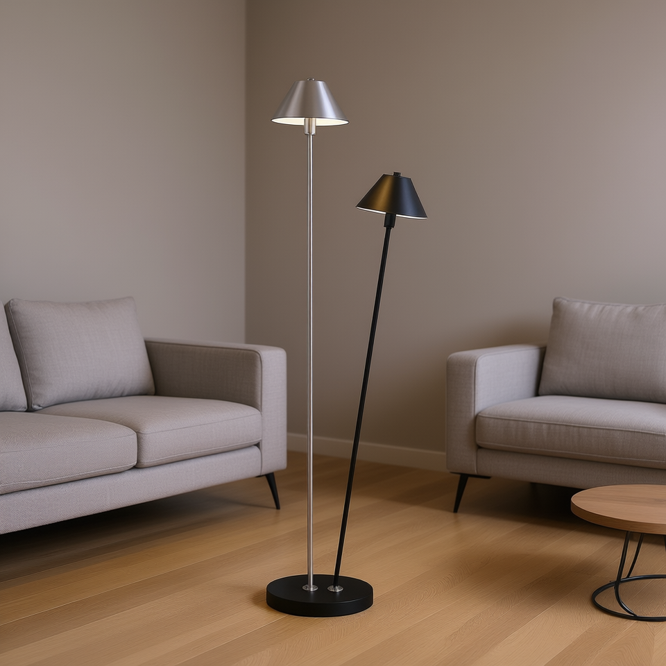 Lampada da terra a LED doppia G9 nera opaca e argento, 47,5 pollici, design moderno per illuminazione interna