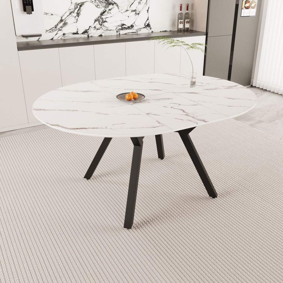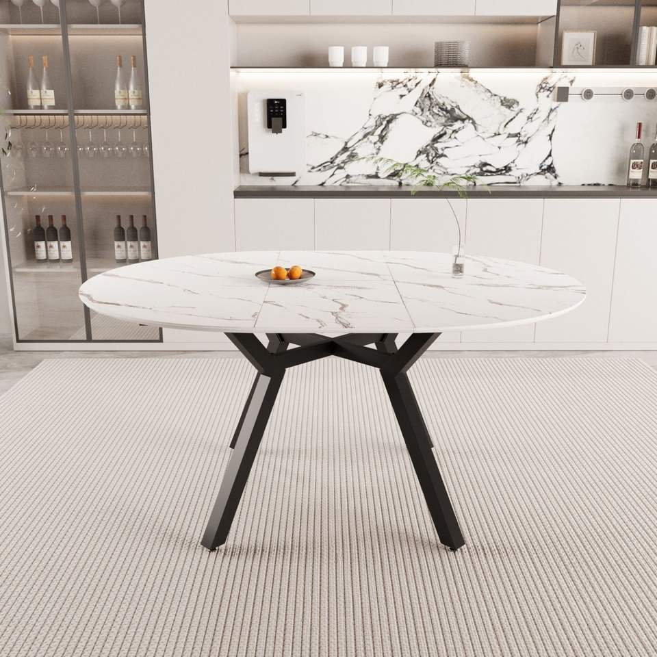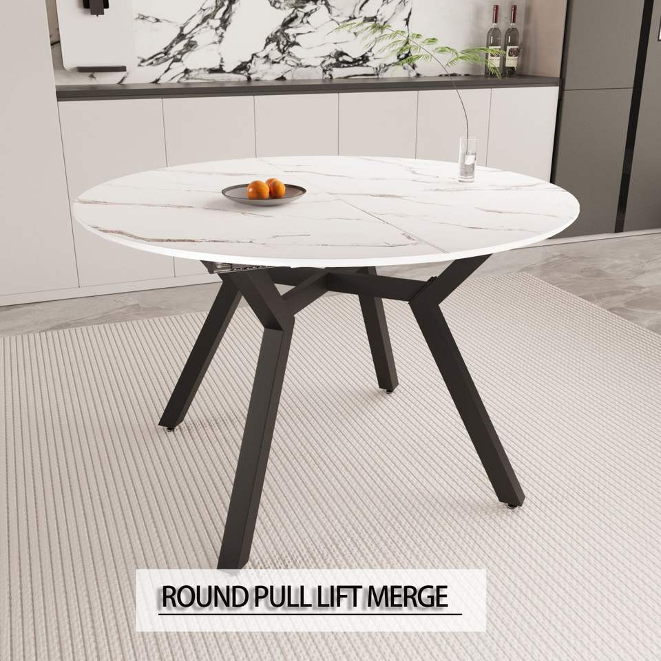 47-63\" Extendable White Modern Coffee Table Circular Kitchen Dining Table with MDF Top Metal Legs for 4-6 Persons Home Use