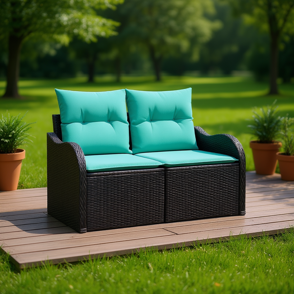 Divano da giardino in polyrattan 47,64 x 24,41 x 27,17 pollici con cuscino, due posti, mobili da esterno in stile contemporaneo