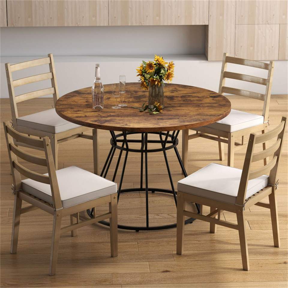 Tavolo da Pranzo Rotondo Marrone da 47 Pollici per 4-6 Persone, Dimensioni Familiari con Base in Metallo a Clessidra e Piano Curvo
