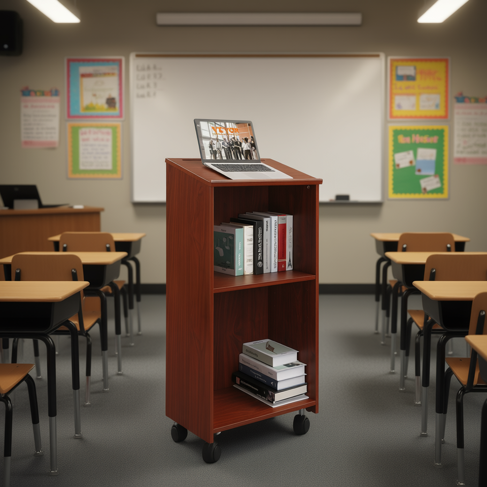 Leggio in Legno Marrone da 47 Pollici con Ruote e Piano Inclinato per Casa, Ufficio, Scuola, Chiesa