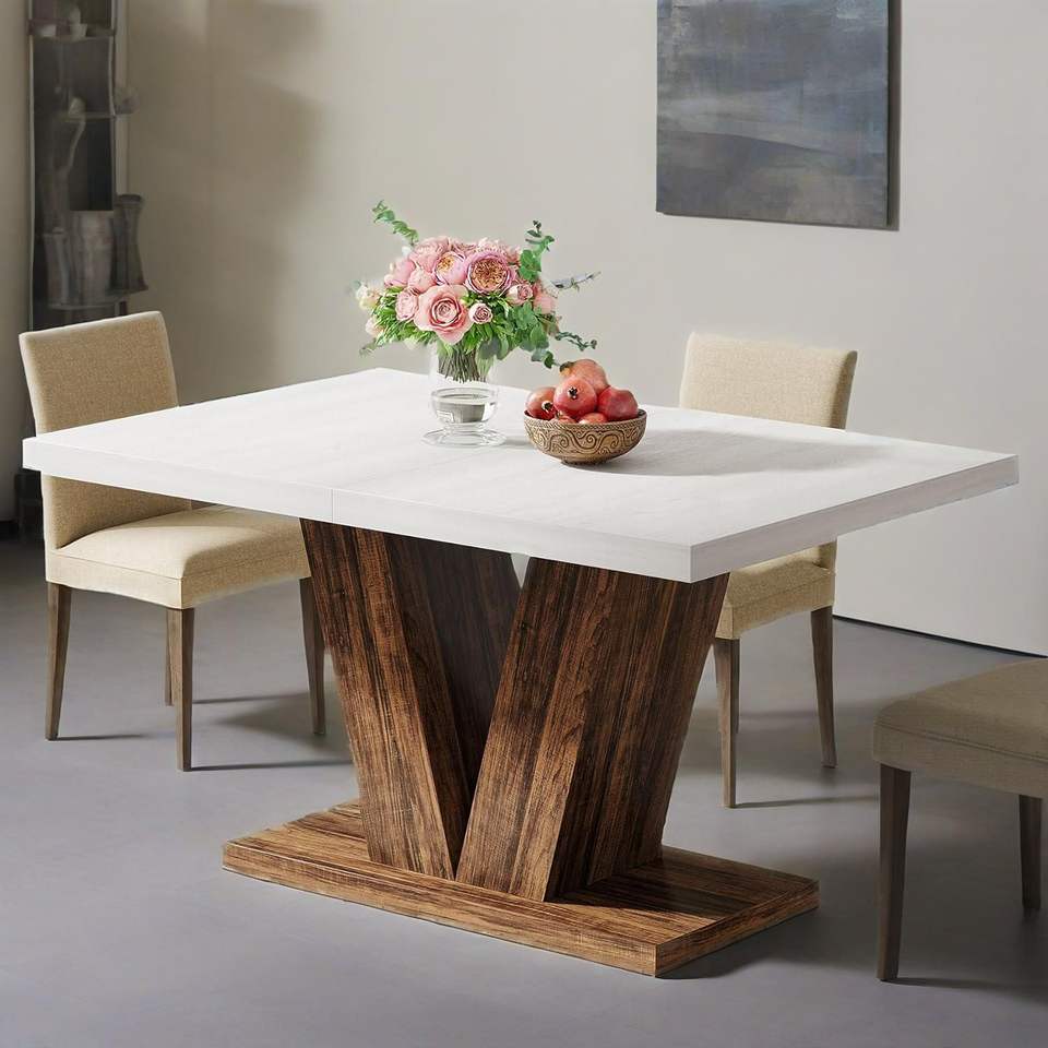 Tavolo da Pranzo in Legno Bianco Stile Fattoria da 47 Pollici con Base Robusta per 4 Persone, Tavolo da Cucina