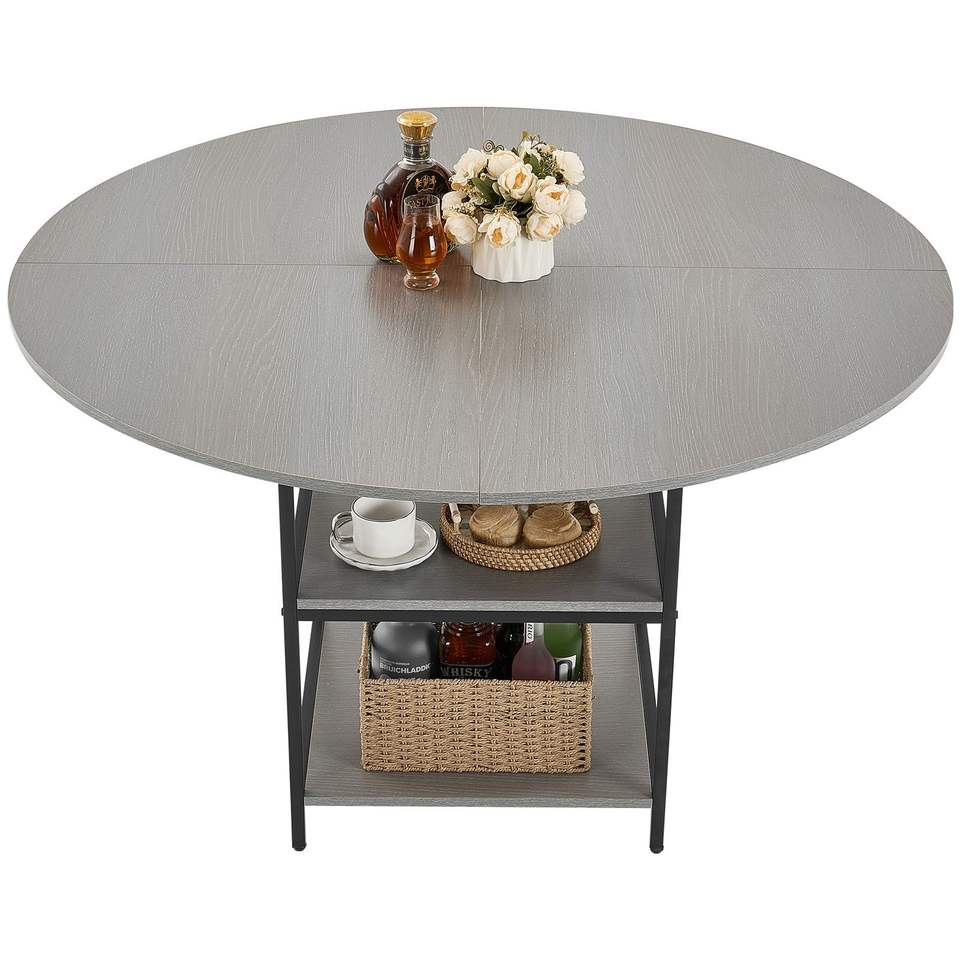 Tavolo da Pranzo Rotondo Moderno da 47 Pollici per 4-6 Persone, in Legno con Ripiano Portaoggetti per Sala da Pranzo