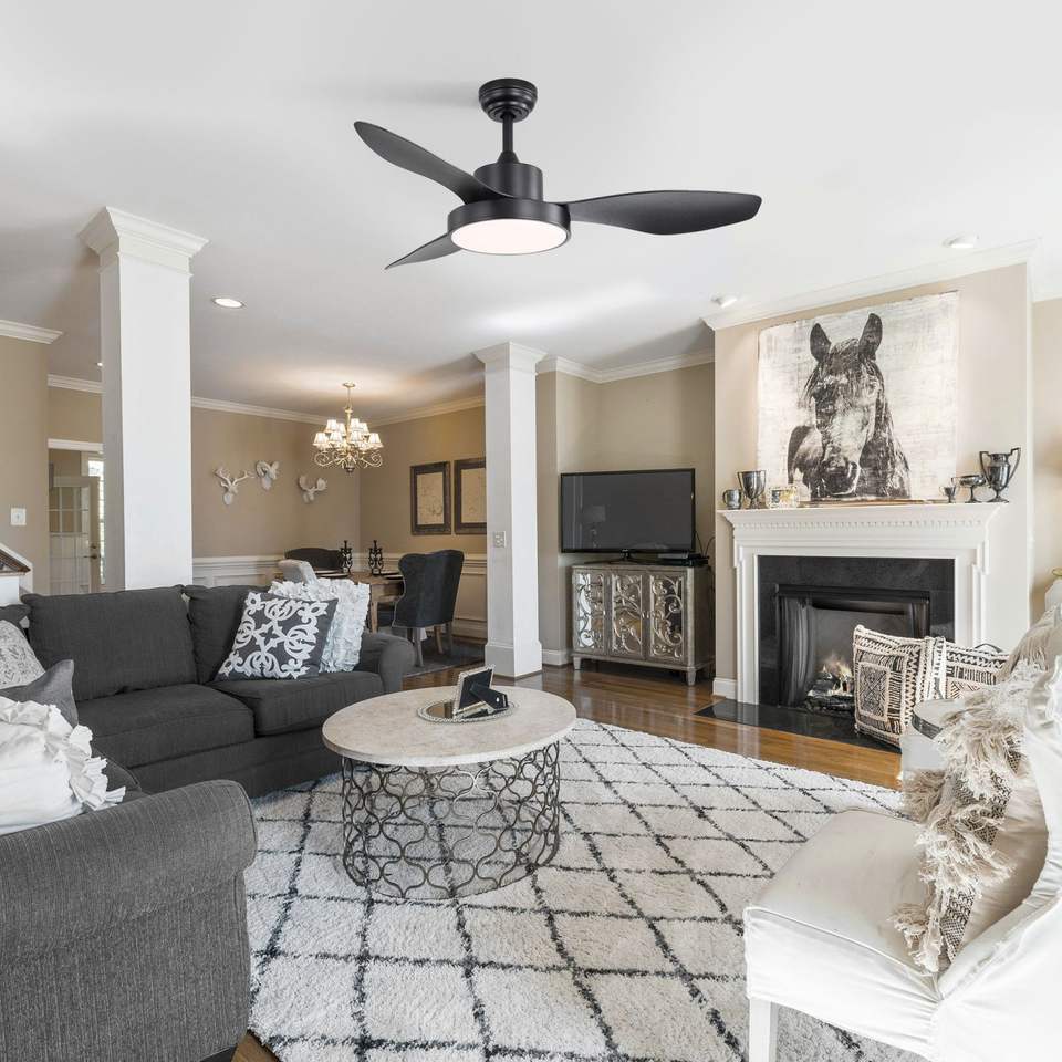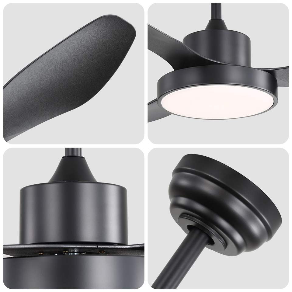 Ventilatore da soffitto reversibile da 47 pollici con motore DC, luce LED da 22W e telecomando a 6 velocità per camera da letto - Nero