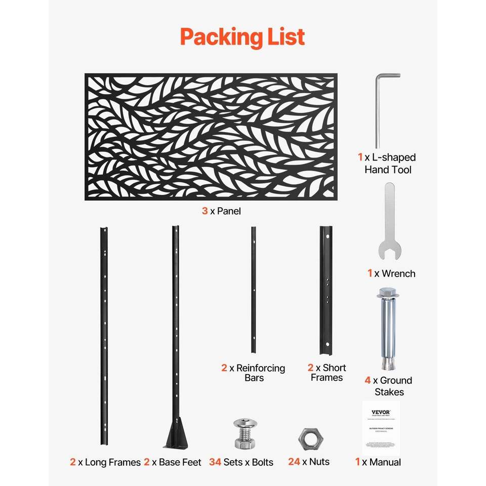 Divisorio per Esterni in Metallo da 119,4 cm L x 182,9 cm H, Autoportante a 3 Pannelli, Pannelli Decorativi per la Privacy da Esterno a 3 Pannelli