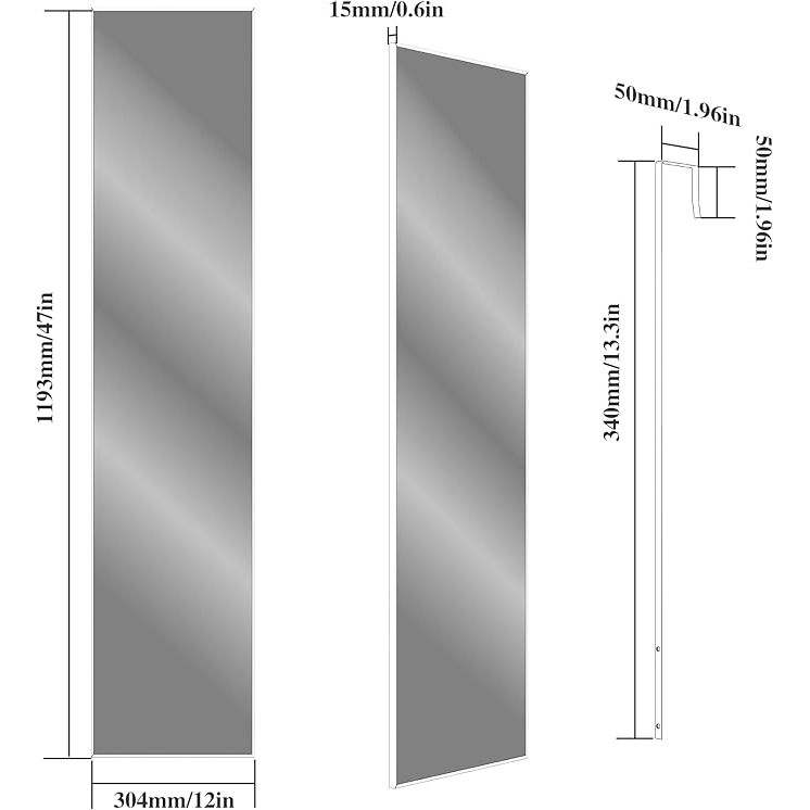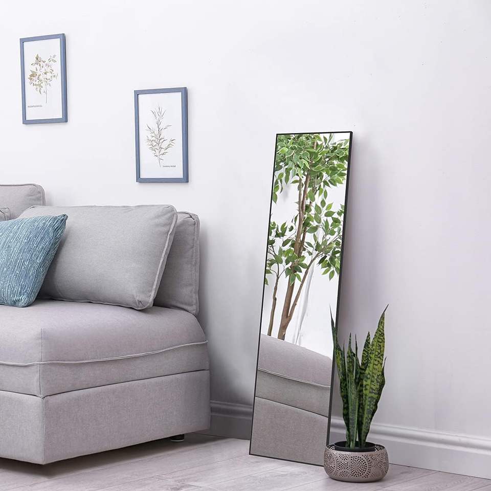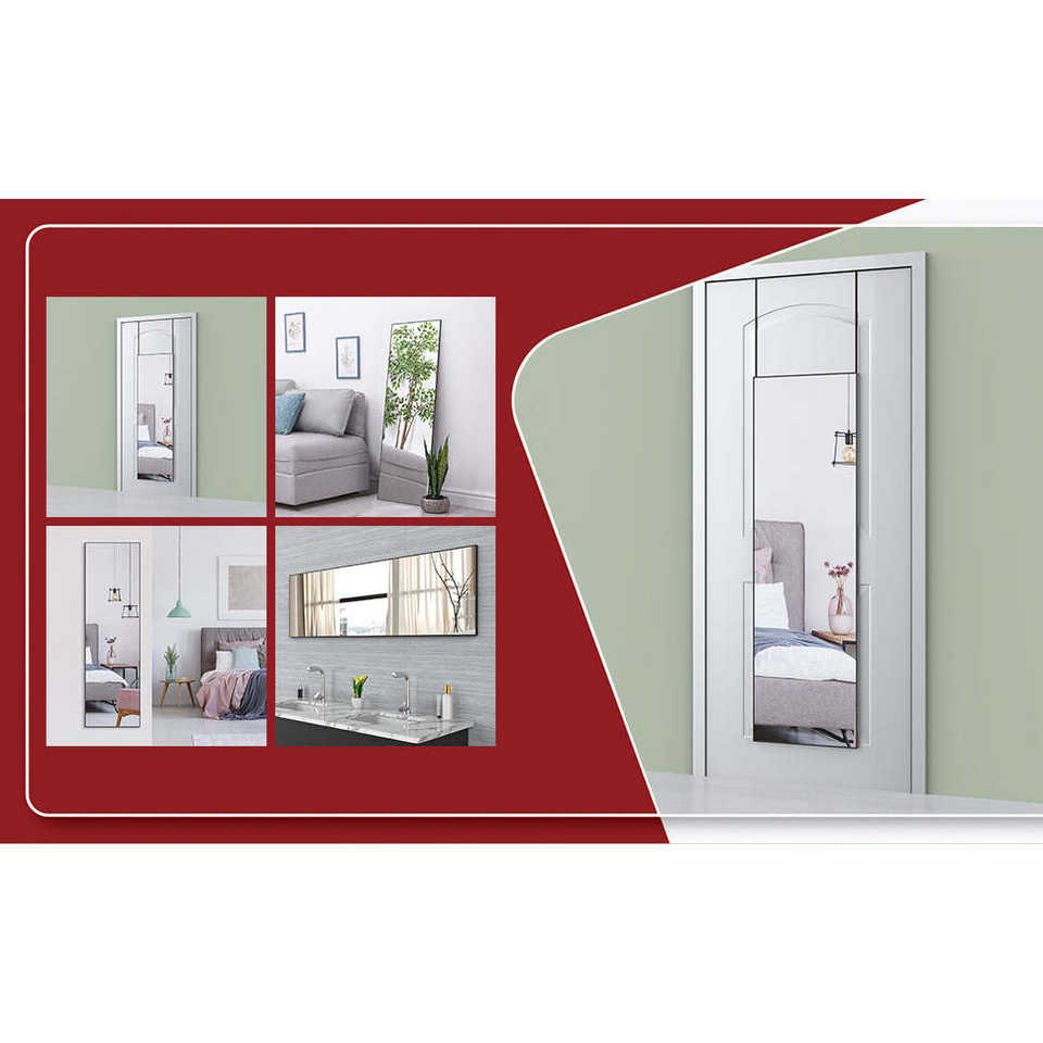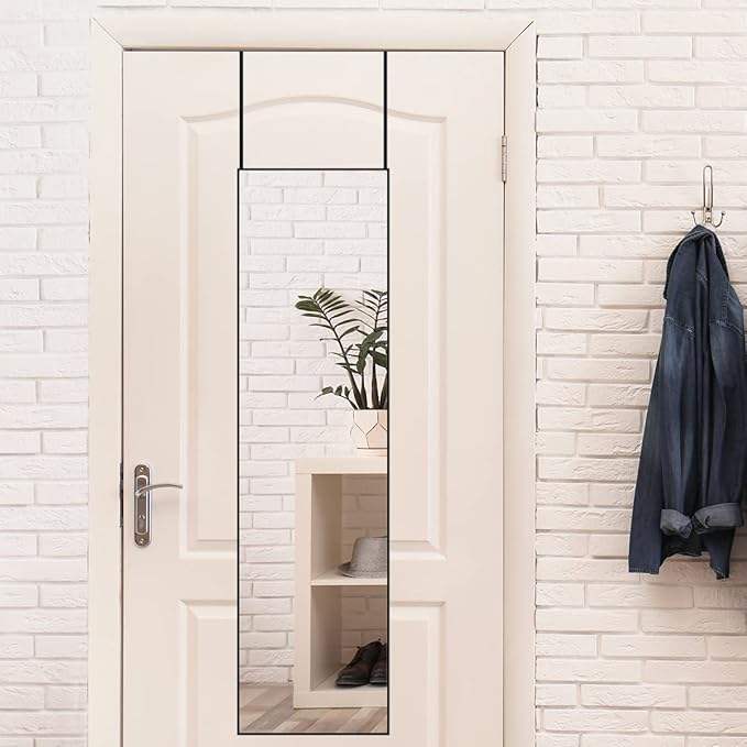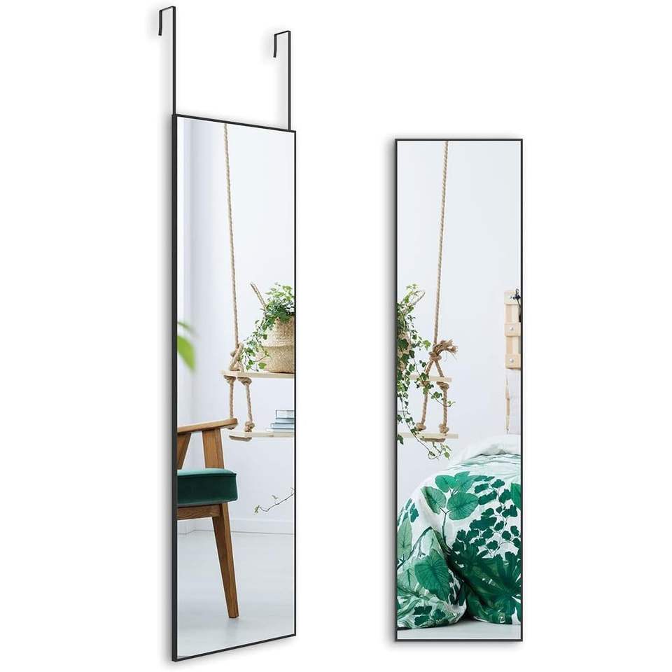 47 X 12 Black Full-Length Over-the-Door Mirror with 2 Hooks Aluminum Frame Wall-Mounted Door Hanging Decor