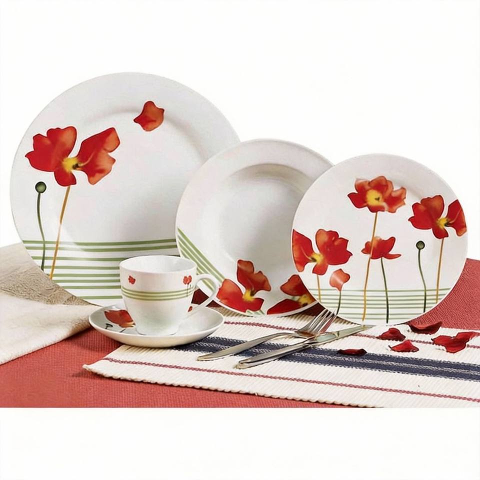 Set da 47 Pezzi in Fine Porcellana con Motivo Floreale Nero e Rosso, Servizio di Piatti in Ceramica HARVIT HYPR-A277 per Feste