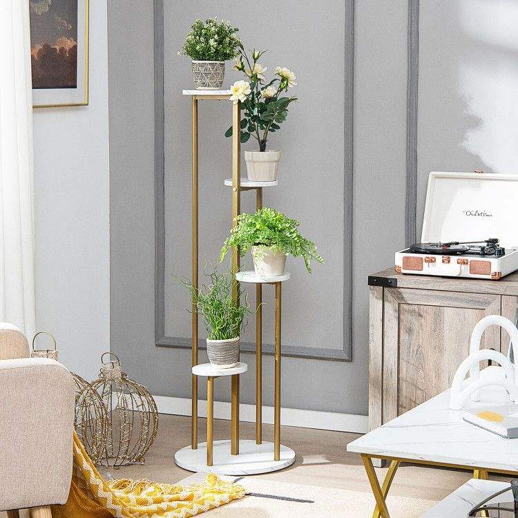 Scaffale Portapiante in Metallo a 4 Livelli da 48,5 Pollici e Mensole Espositive da Parete