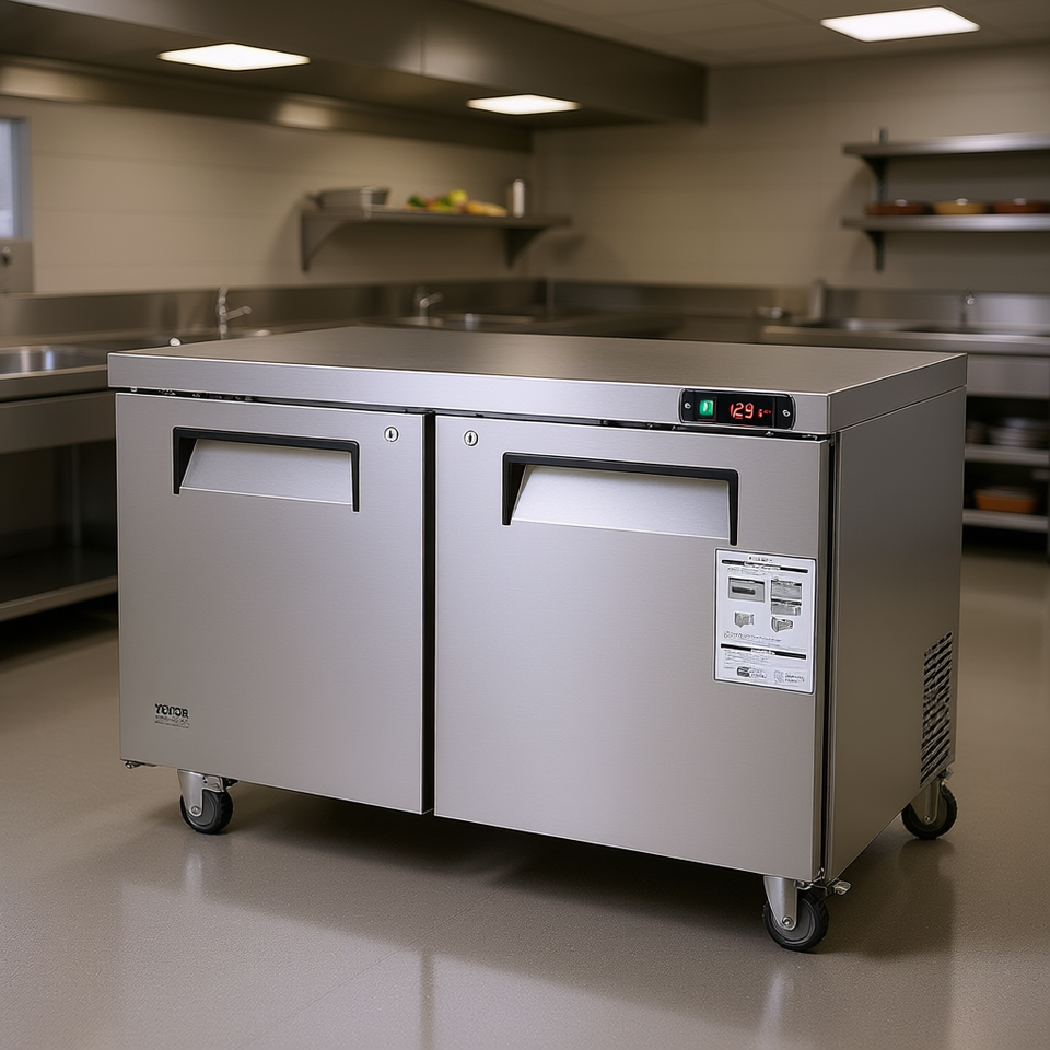 Tavolo Refrigerato Commerciale a Doppia Porta da 48 Pollici, 12.9 Cu Ft, per Preparazione Congelati, Sandwich e Insalate