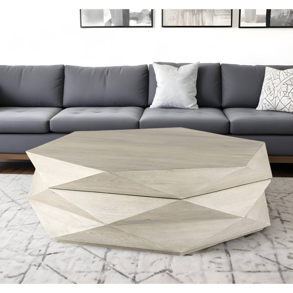 48\" HMS Natural Solid Wood Hexagon Lift Top Coffee Table