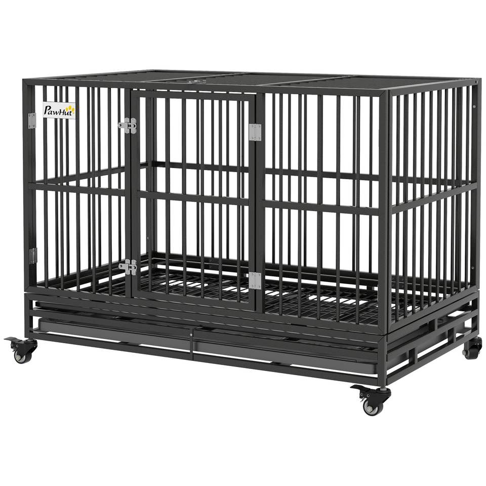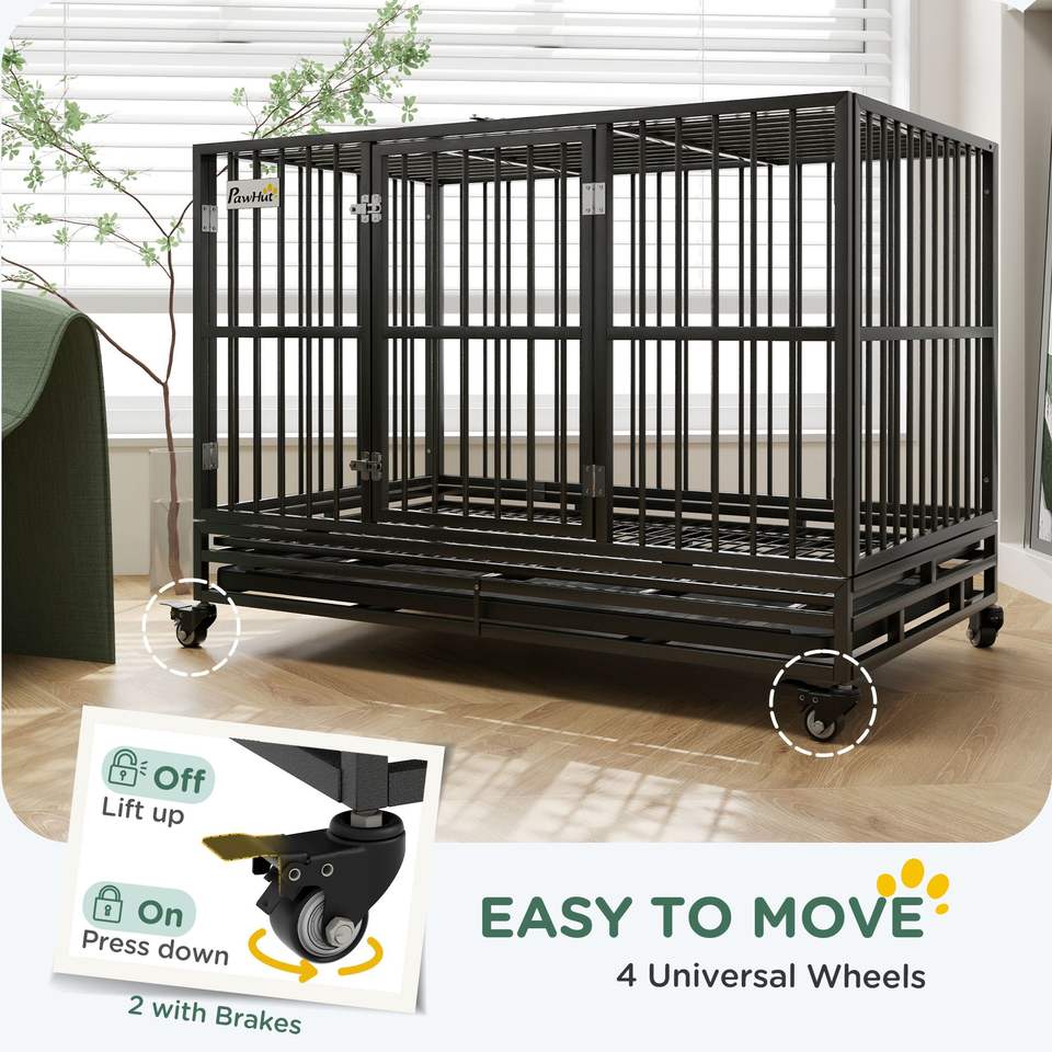 Gabbia per Cani Robusta da 48 Pollici in Metallo con Ruote Bloccabili, Doppia Porta e Vassoio Rimovibile Grigio - Gabbia Perfetta per Animali Domestici