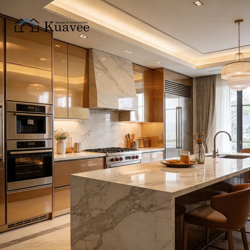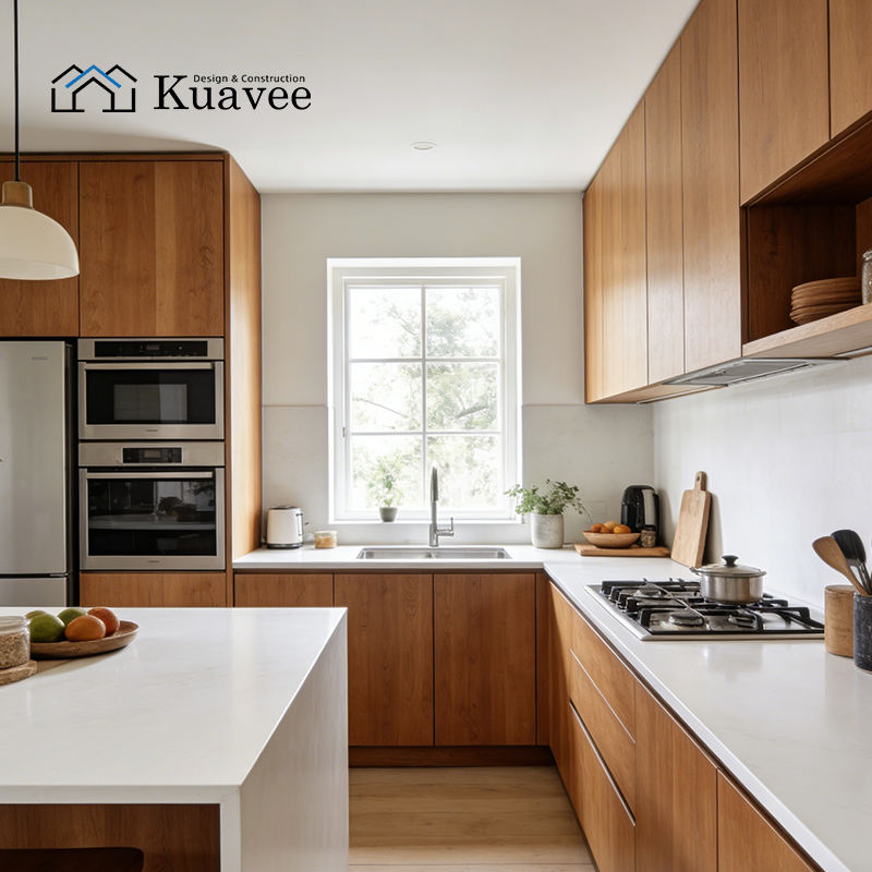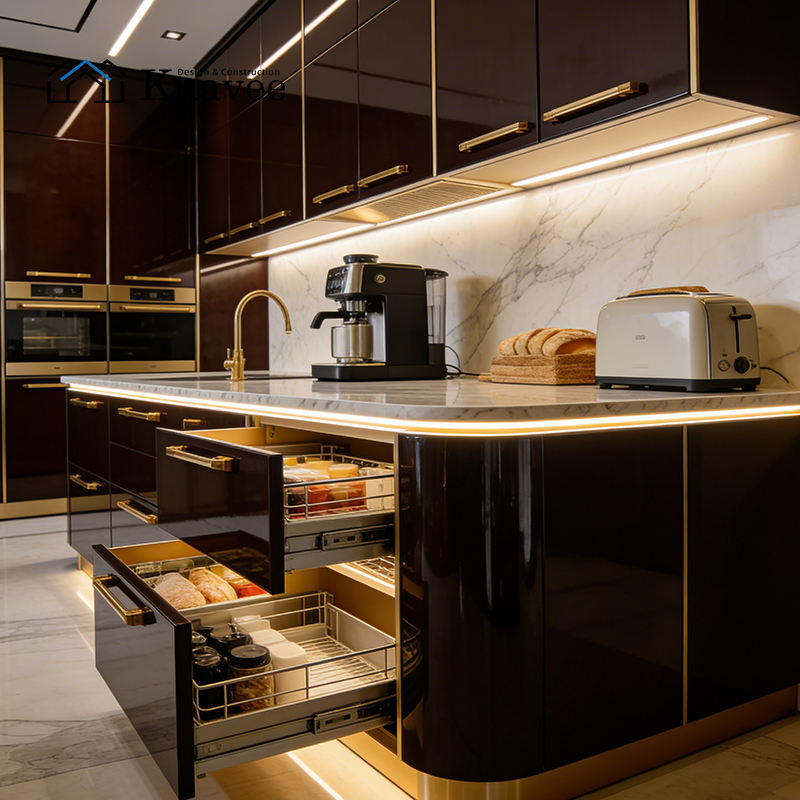 Set di Mobili da Cucina Moderni Personalizzati in Legno Compensato e MDF con Disegni Pronti in 48 Ore, Isola da Cucina in Compensato e Mobili da Cucina