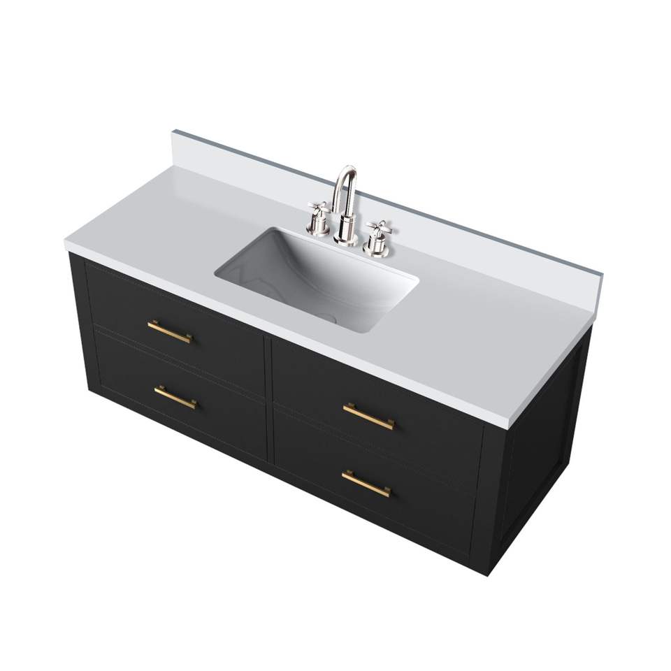 48 In. W X 22 In. D vanità da bagno singola nera con piano in marmo coltivato e rubinetto per piccoli bagni