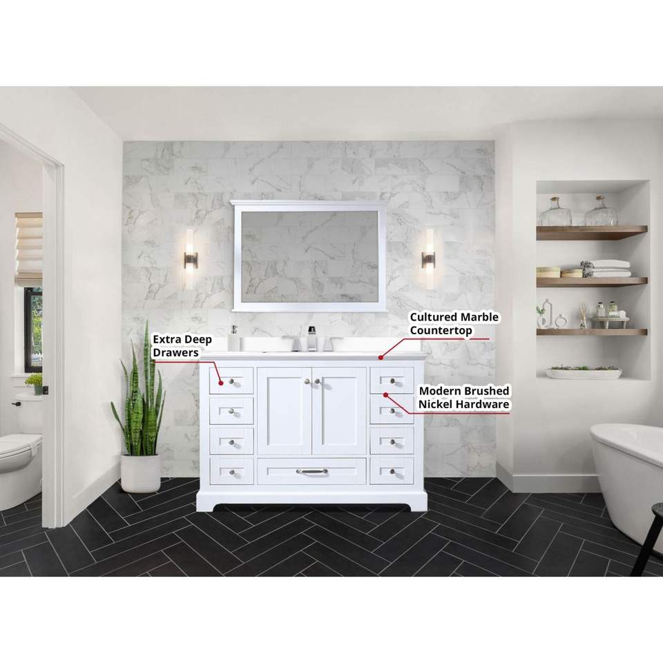48 In. W X 22 In. D vanità bianca singola del bagno con la cima del quarzo e 46 dentro. Lavabo da bagno a specchio