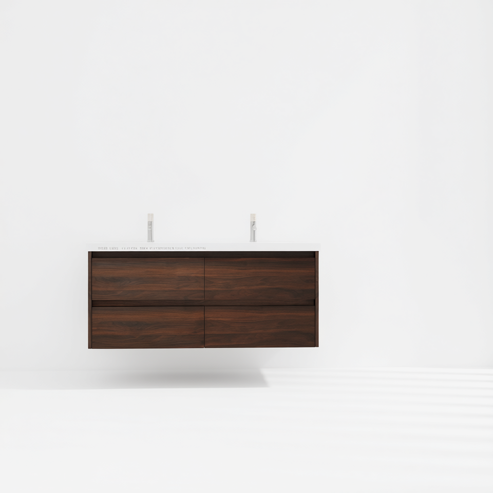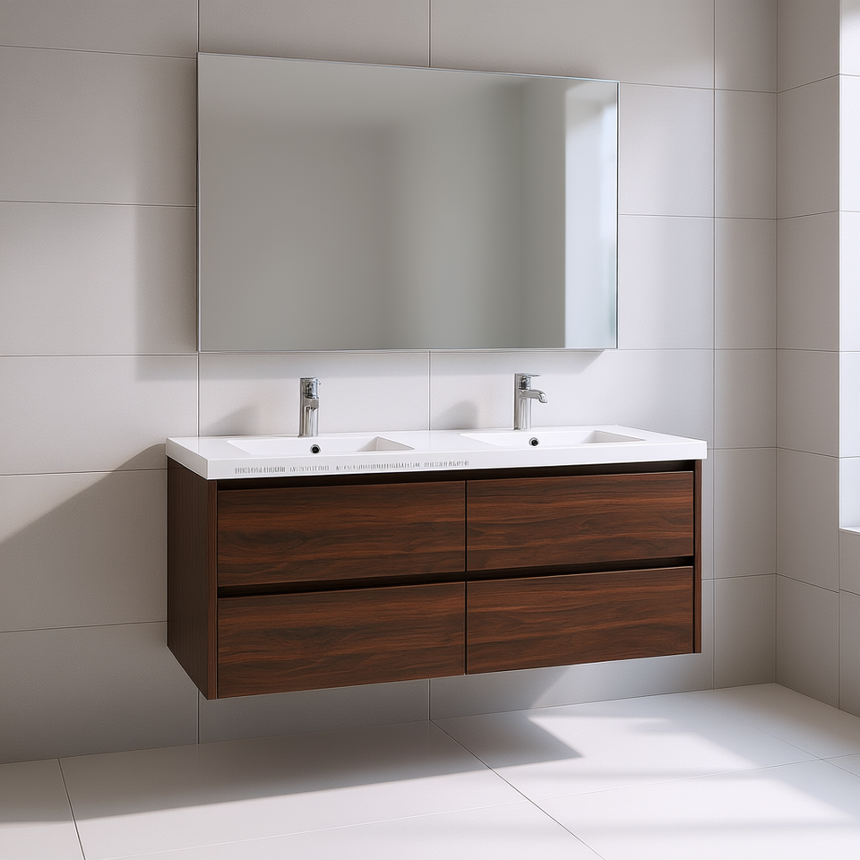 Mobile da Bagno 48x18 con Doppio Lavabo in Resina, Montaggio a Parete, Design Moderno in Legno Scuro