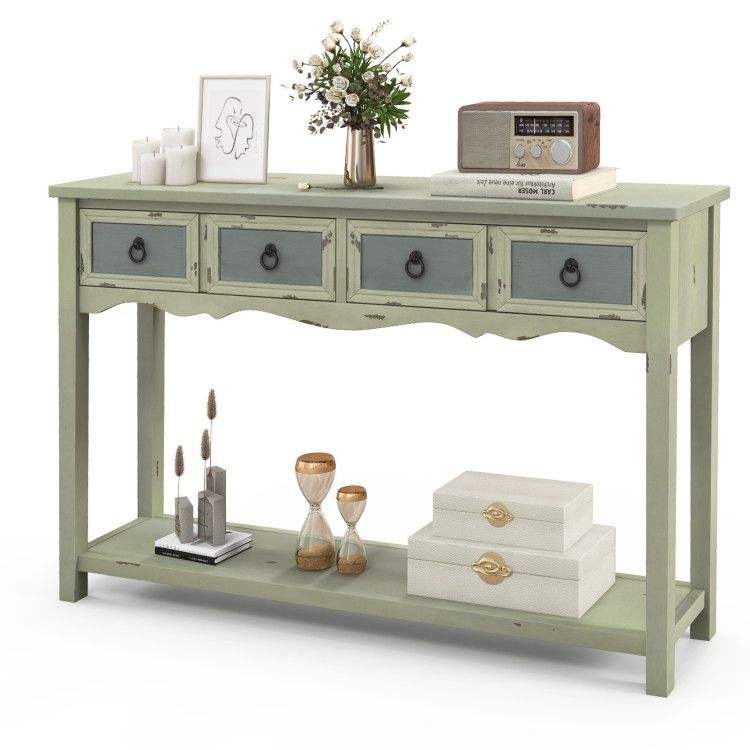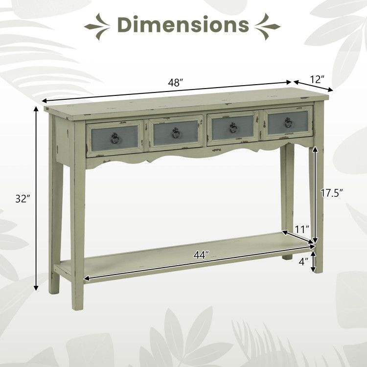 Consolle in Stile Rustico da 48 Pollici con 2 Cassetti e Ripiano Aperto per Corridoi