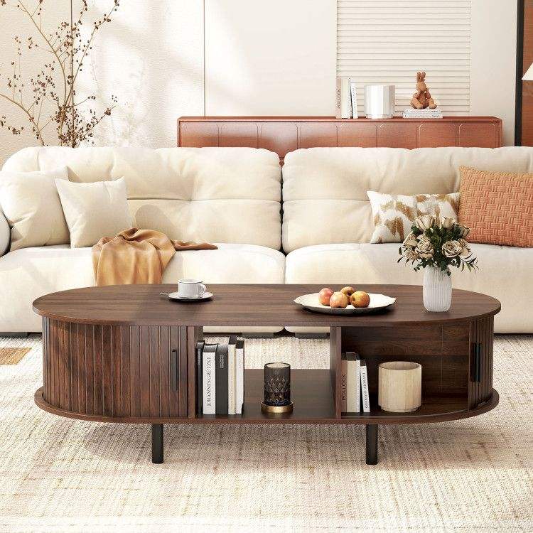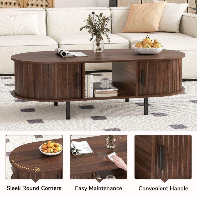 Tavolino da Caffè Moderno Mid-Century da 48 Pollici con Ante Scorrevoli Scanalate e Vano Aperto