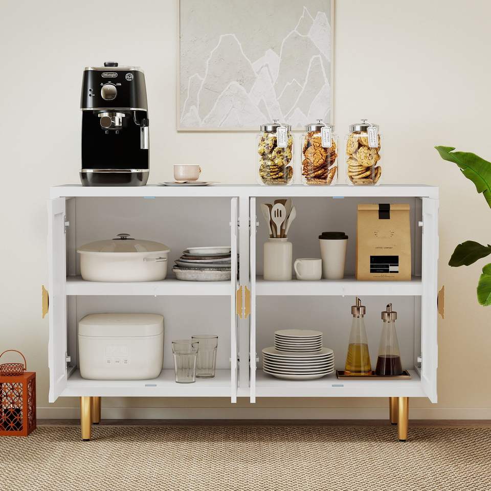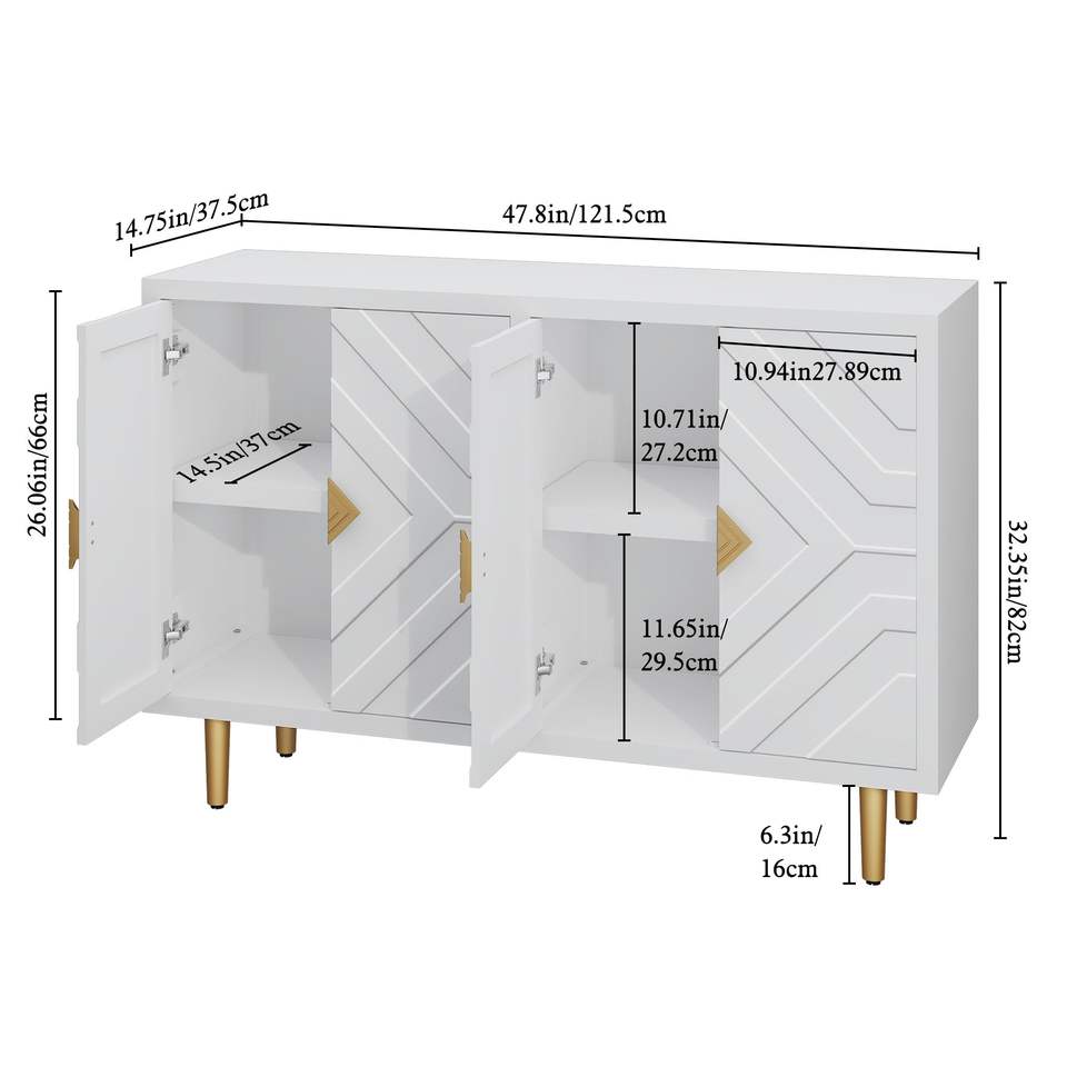 Credenza Moderna a 4 Ante da 48 Pollici con Ripiani e Vani Portaoggetti per Soggiorno e Sala da Pranzo