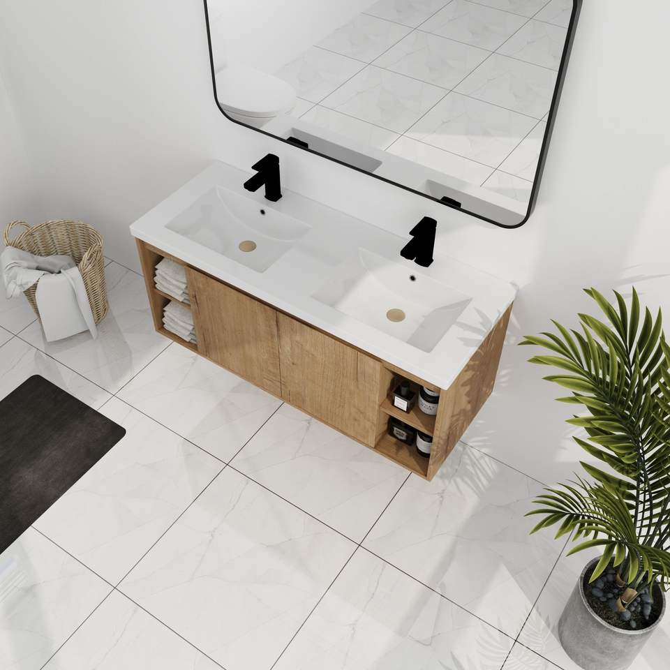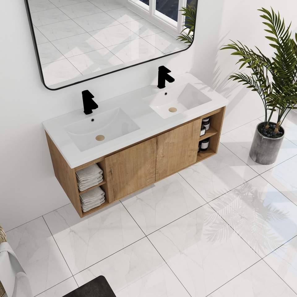 Lavandino da 48 pollici da bagno a parete con doppio lavello a chiusura morbida cerniera per porta KD-confezionato-modello BVB07348IMOX-GRB4840D