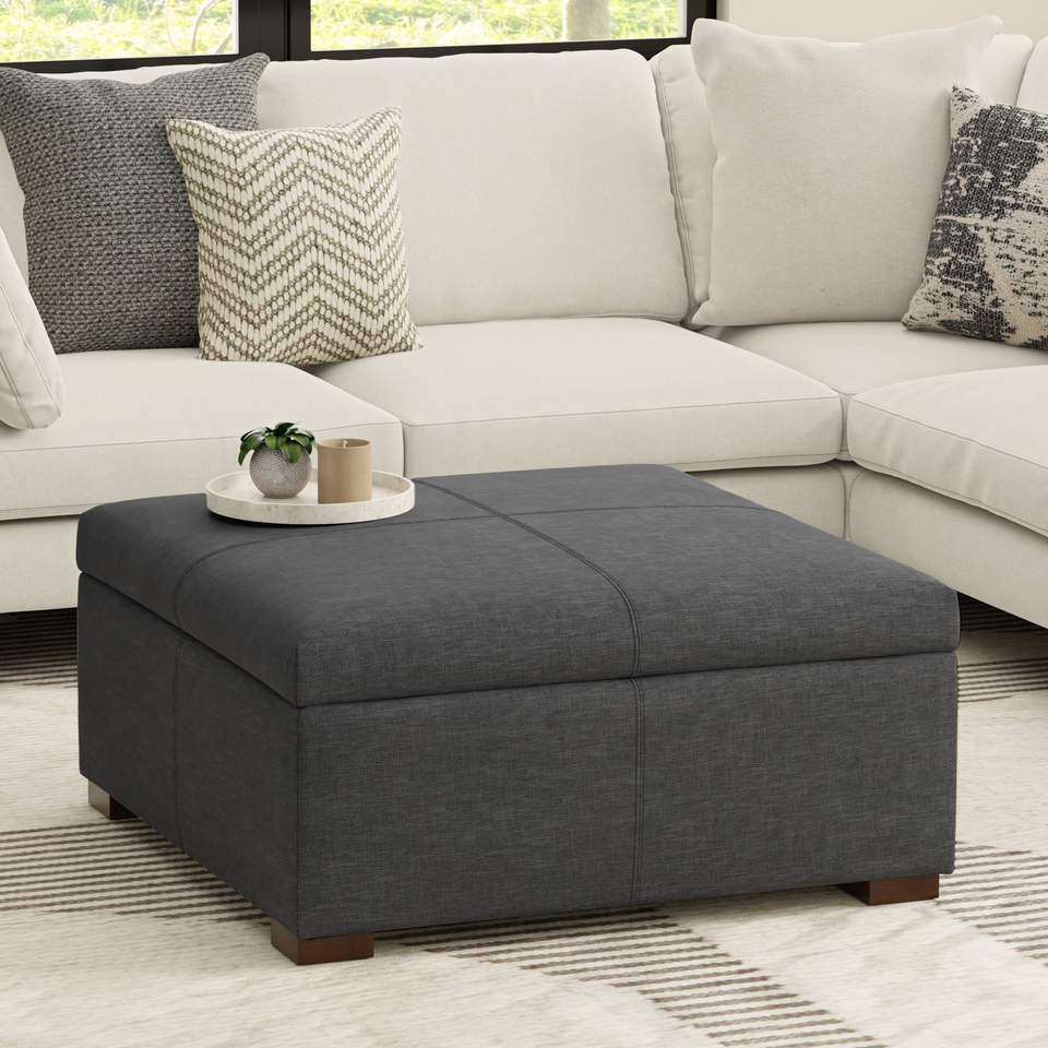 Pouf contenitore rettangolare Gabbie da 48 pollici di larghezza in lino poliestere grigio ardesia - Sgabelli e pouf