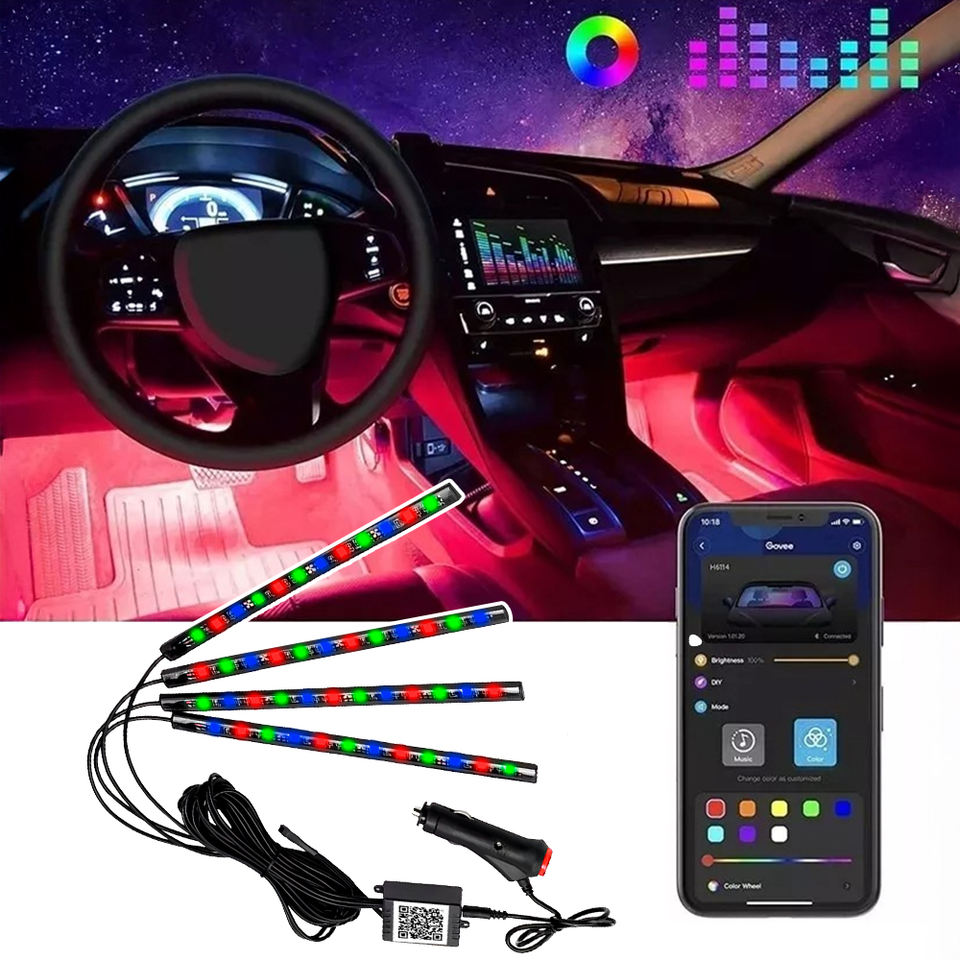Strisce LED RGB da 48 LED per Interni, Illuminazione Auto con Telecomando e Integrazione App