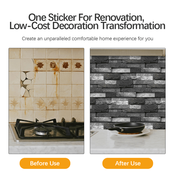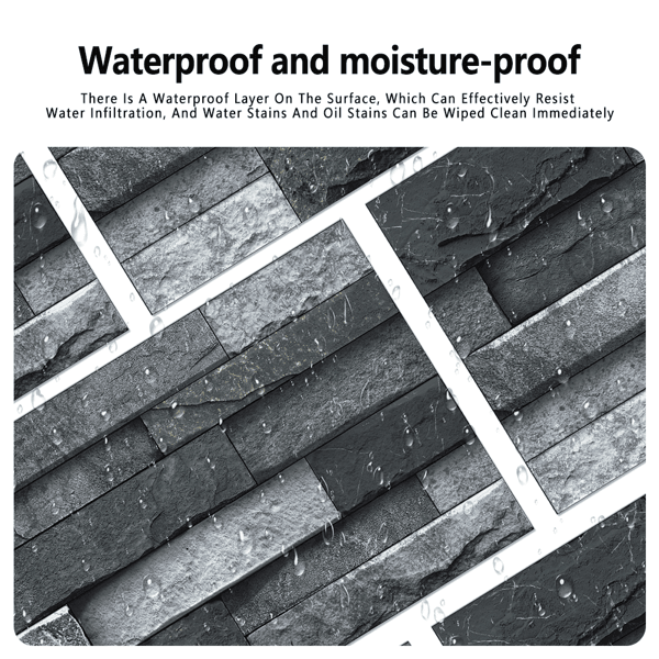 48 Pcs Black Gray Stone Brick Peel Stick Wallpaper Waterproof Self-Adhesive Stickers for Home Decor Easy Installation Bathroom