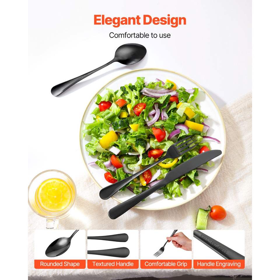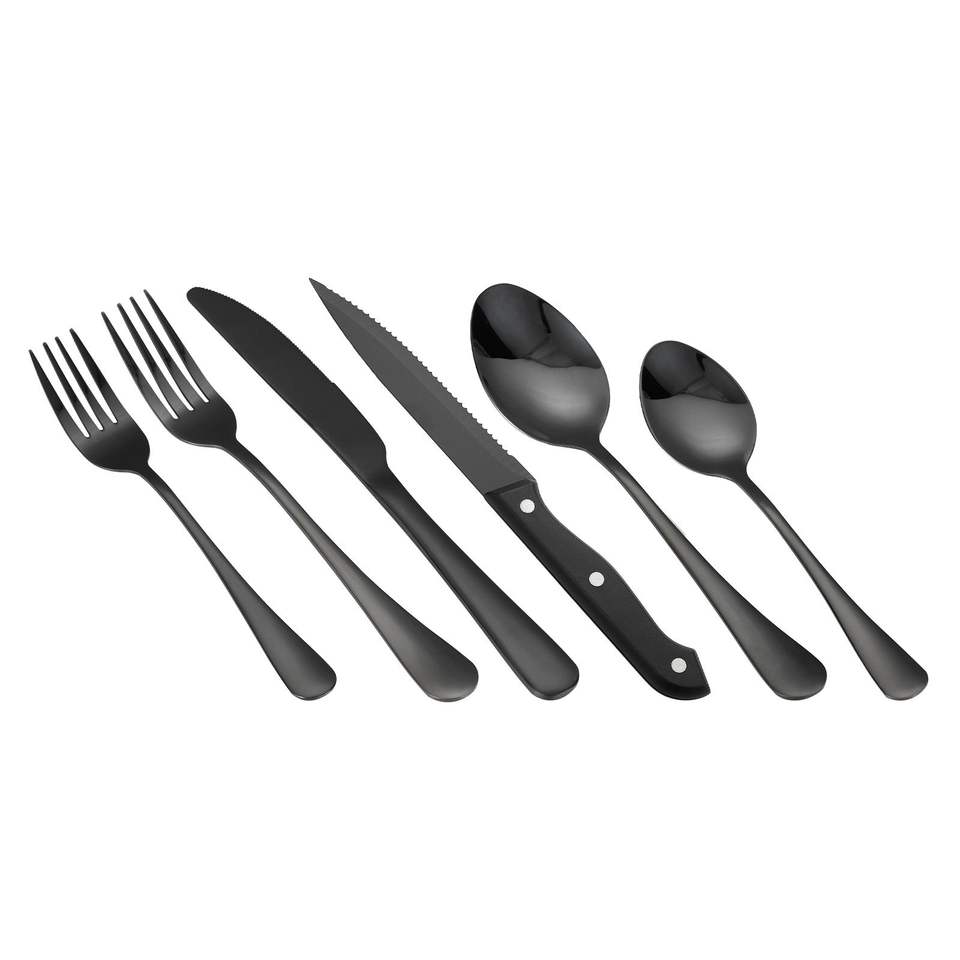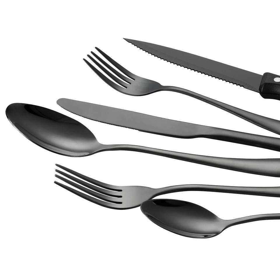 Set di posate da 48 pezzi in acciaio inossidabile nero, 8 coltelli da bistecca per alimenti con finitura a specchio