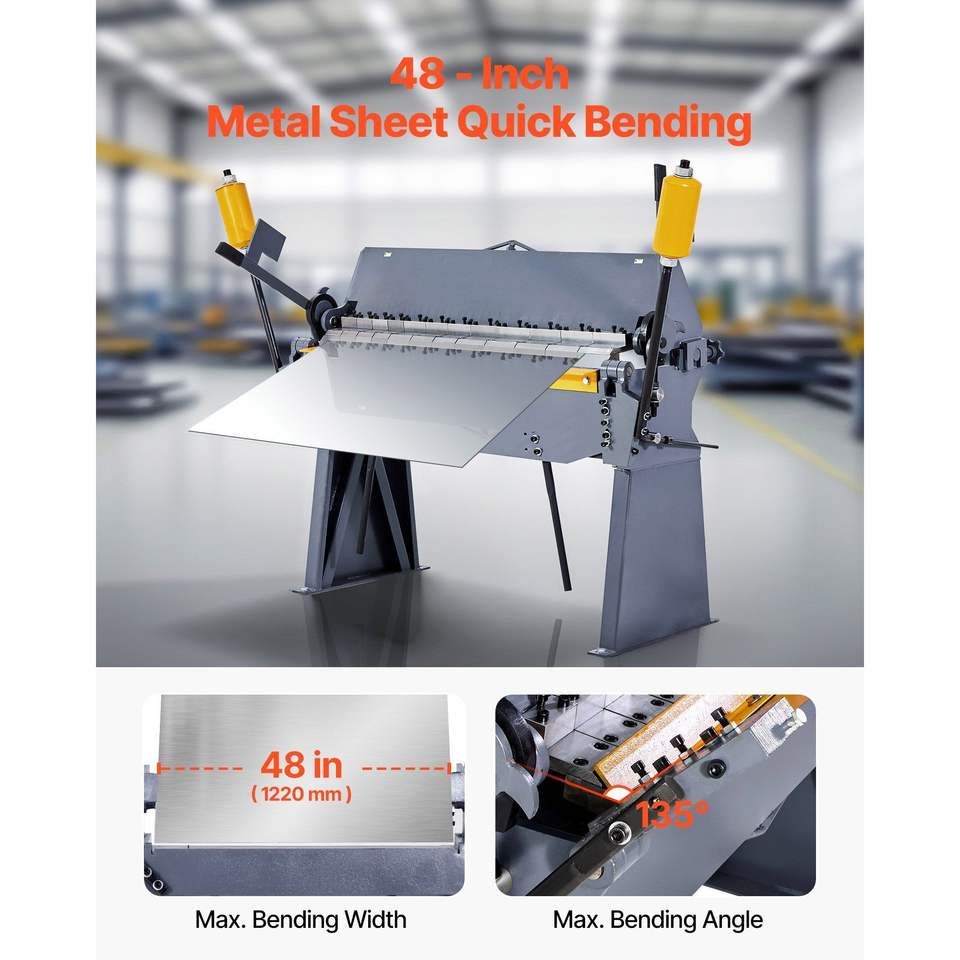 Piegatrice per Lamiera da 48 Pollici, Capacità 12-Gauge in Acciaio Dolce, Angolo di Piegatura Regolabile 0-135 Gradi, Macchina Piegatrice per Lamiera in Scatola