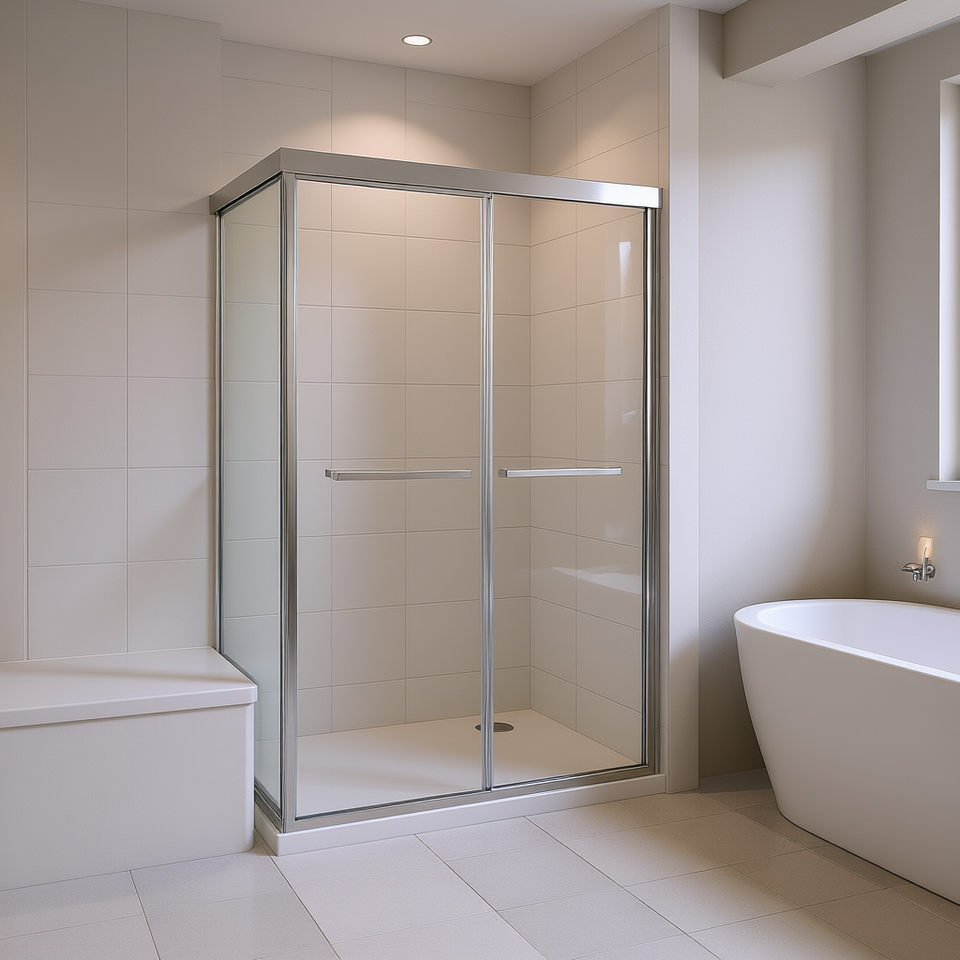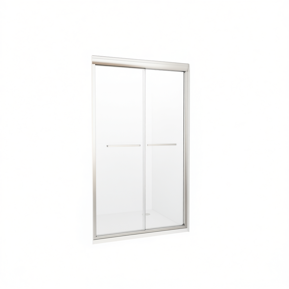Porta Doccia Scorrevole Semi-Incassata 48x76 Pollici con Telaio Cromato e Vetro Temperato 6mm, Box Doccia Rettangolare