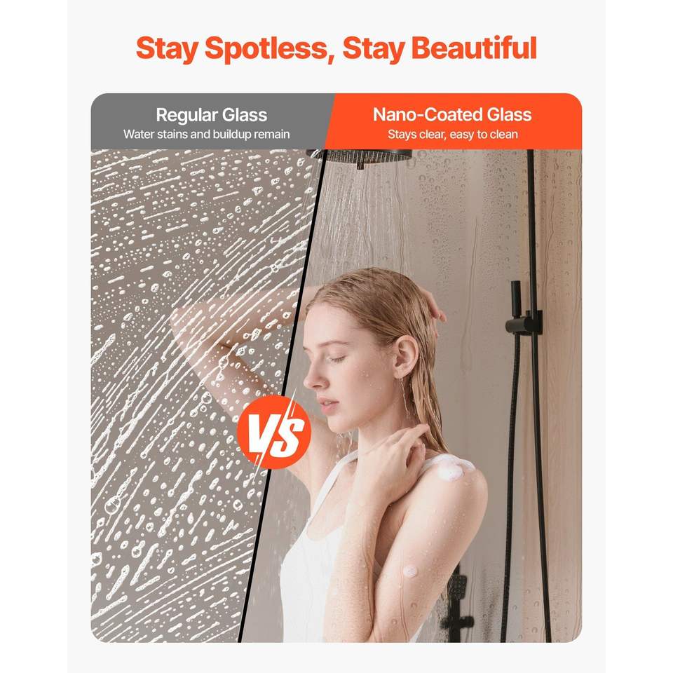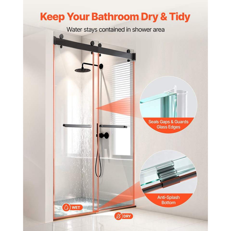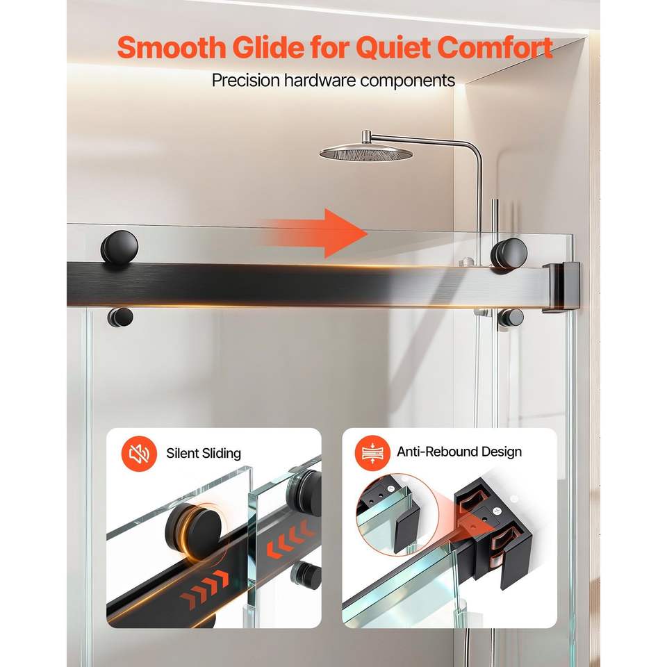 Porta Doccia Scorrevole Senza Telaio in Vetro Temperato Trasparente 48'' x 76'', Spessore 3/8'', Insonorizzata e Anti-Schiacciamento