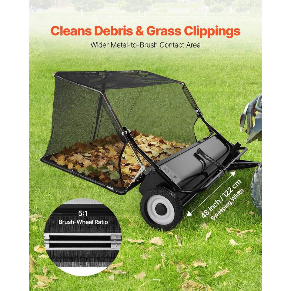 Spazzatrice da Giardino Trainabile da 48 Pollici con Capacità di 26 Cu. Ft. Sacca Raccogli Foglie e Erba con Capacità Elevata, Rimorchiabile, con Funzione di Scarico, Strumento di Raccolta