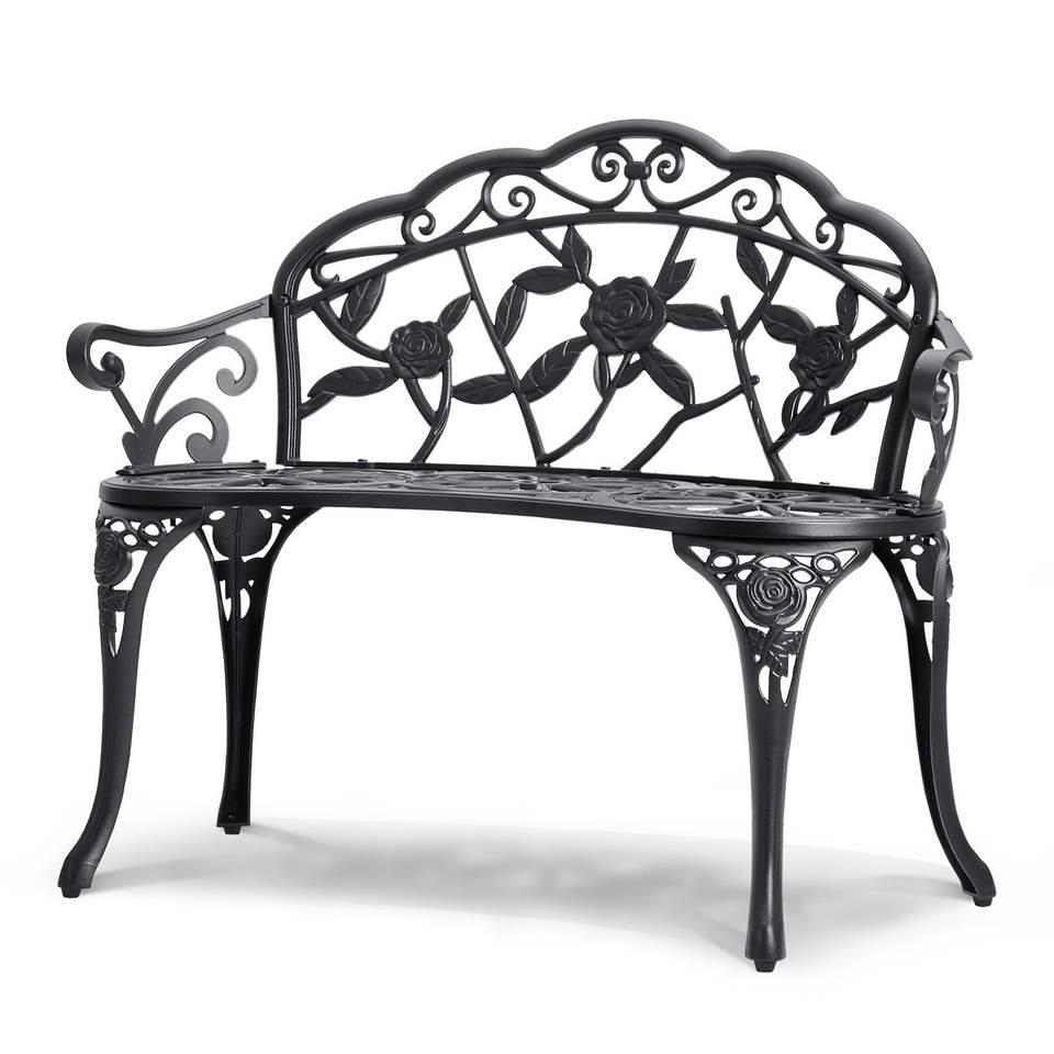 480 Lbs Load Capacity Outdoor Bench 38.8 Inches Metal Garden Park Bench with Backrest Armrests for Front Porch Yard Patio