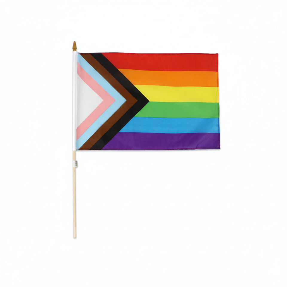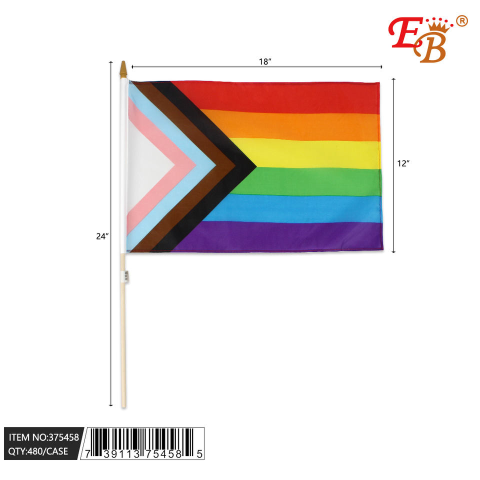 480 pz 40DZ/CS bandiera personalizzata con bastone arcobaleno 12 \ "X18 \" stampa digitale in Nylon/poliestere/materiale plastico bandiera a mano con Logo personalizzato