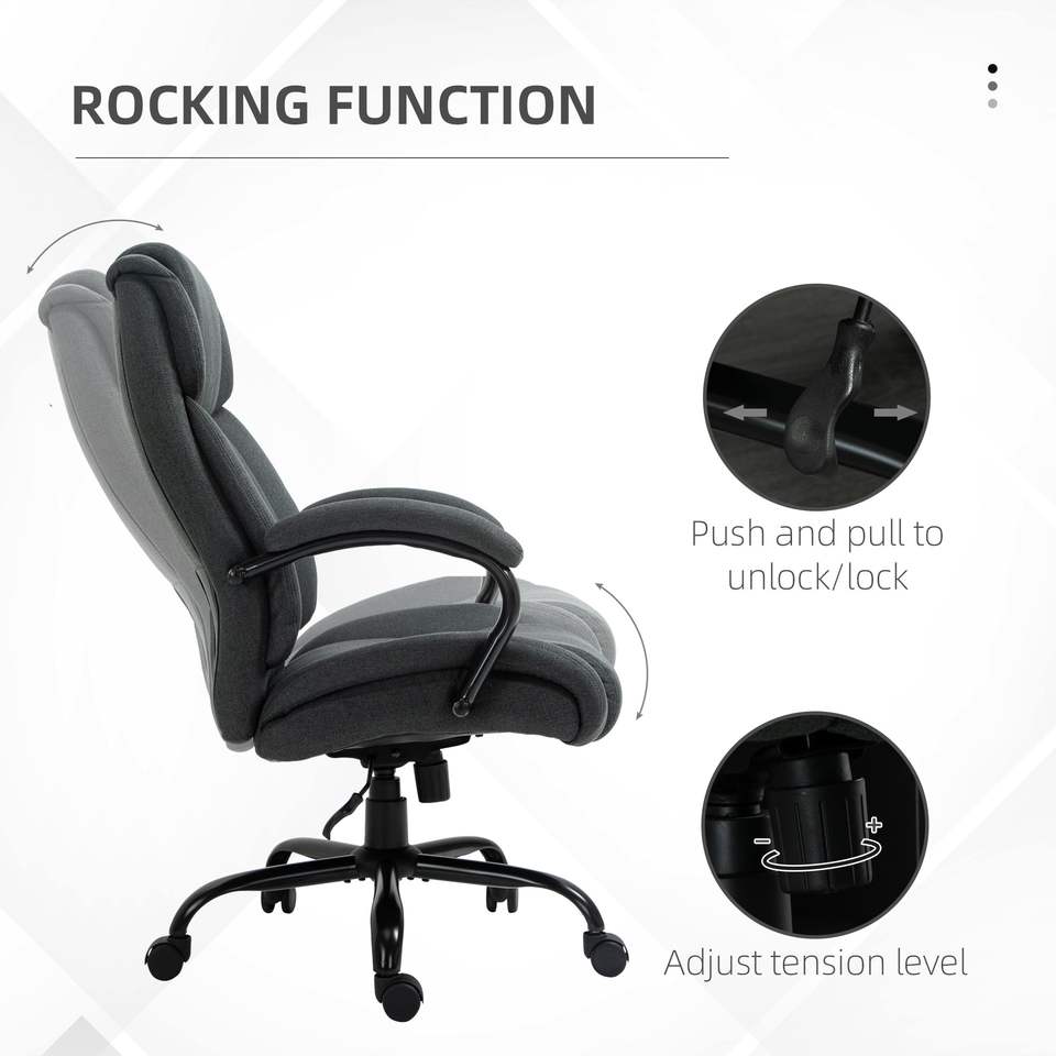 Sedia da Ufficio in Tessuto di Lino per Persone Alte e Robuste, Capacità 220 kg, Altezza Regolabile, Ruote Girevoli, Colore Grigio Antracite, Seduta Larga per Persone Corpulente